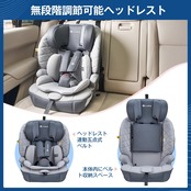 【ロングユース】ヘッドレストは無段階調整可能、肩ベルトの高さ調節が同時に完了する安全機能で、成長に合わせて15ヶ月(76cm)から約12歳頃(150cm)まで快適に使用可能です。長期間使用でき、さまざまな年齢の子供の身長や体型に対応します。