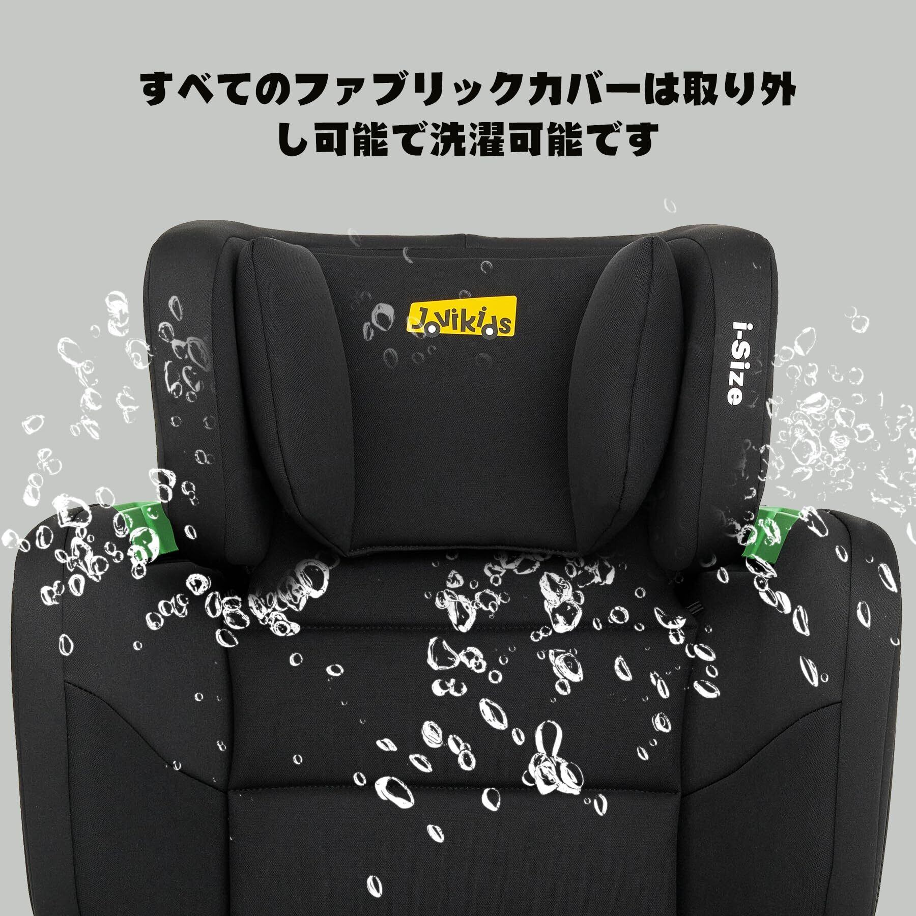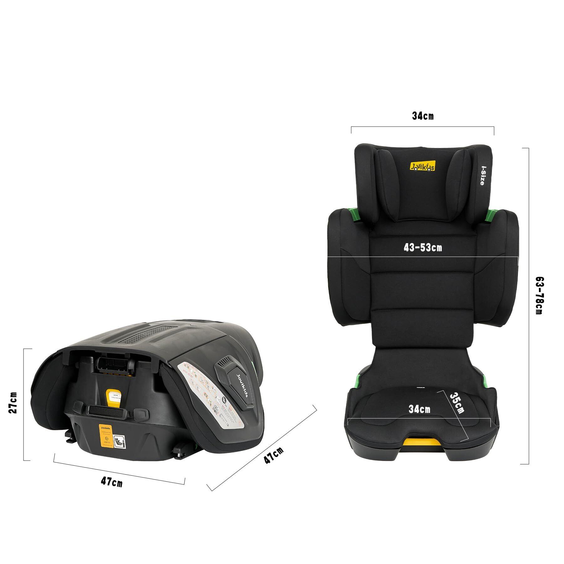 Jovikids 折りたたみのジュニアシート ISOFIX、i-Size R129適合 3歳から チャイルドシート、背もたれの幅とヘッドレストを調節、100~150cm(3~12歳くらい)ブースターシート (ブラック)