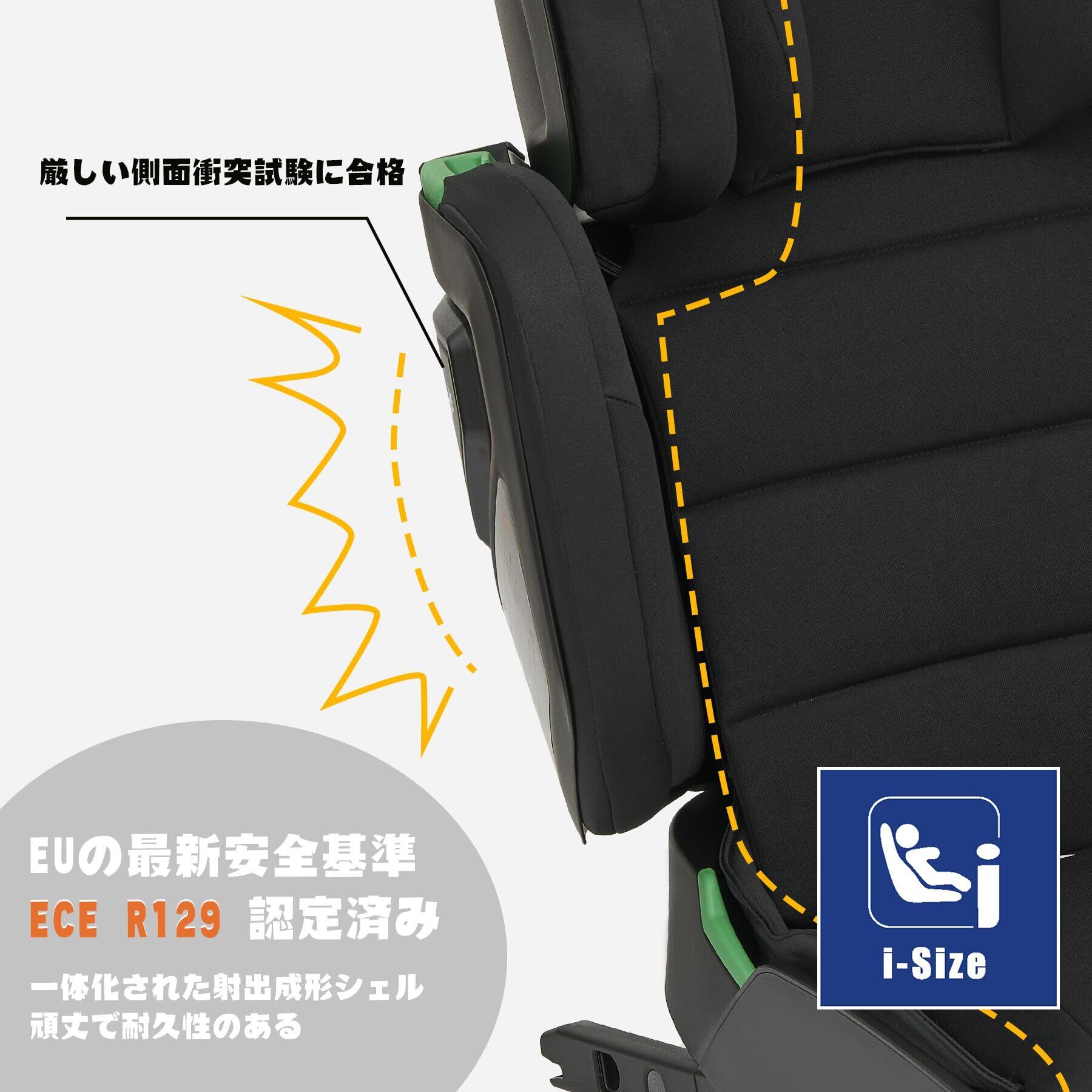【数量限定】Jovikids 折りたたみのジュニアシート ISOFIX、i-Size R129適合 3歳から チャイルドシート、背もたれの幅とヘッドレストを調節、100~150cm(3~12歳くらい)ブースターシート (ブラック)