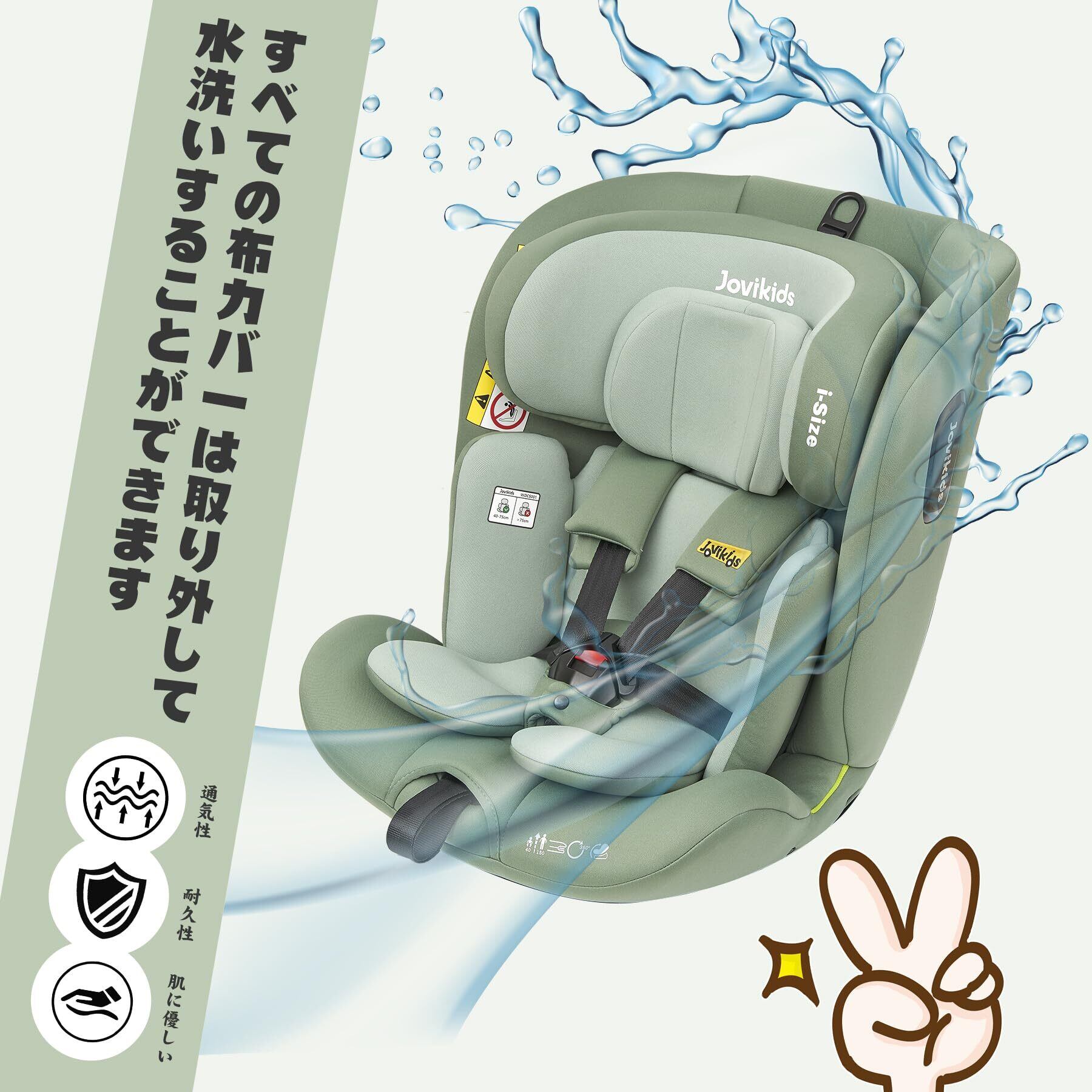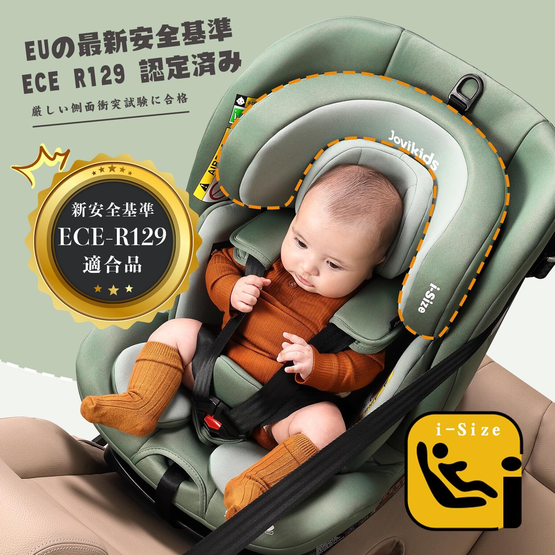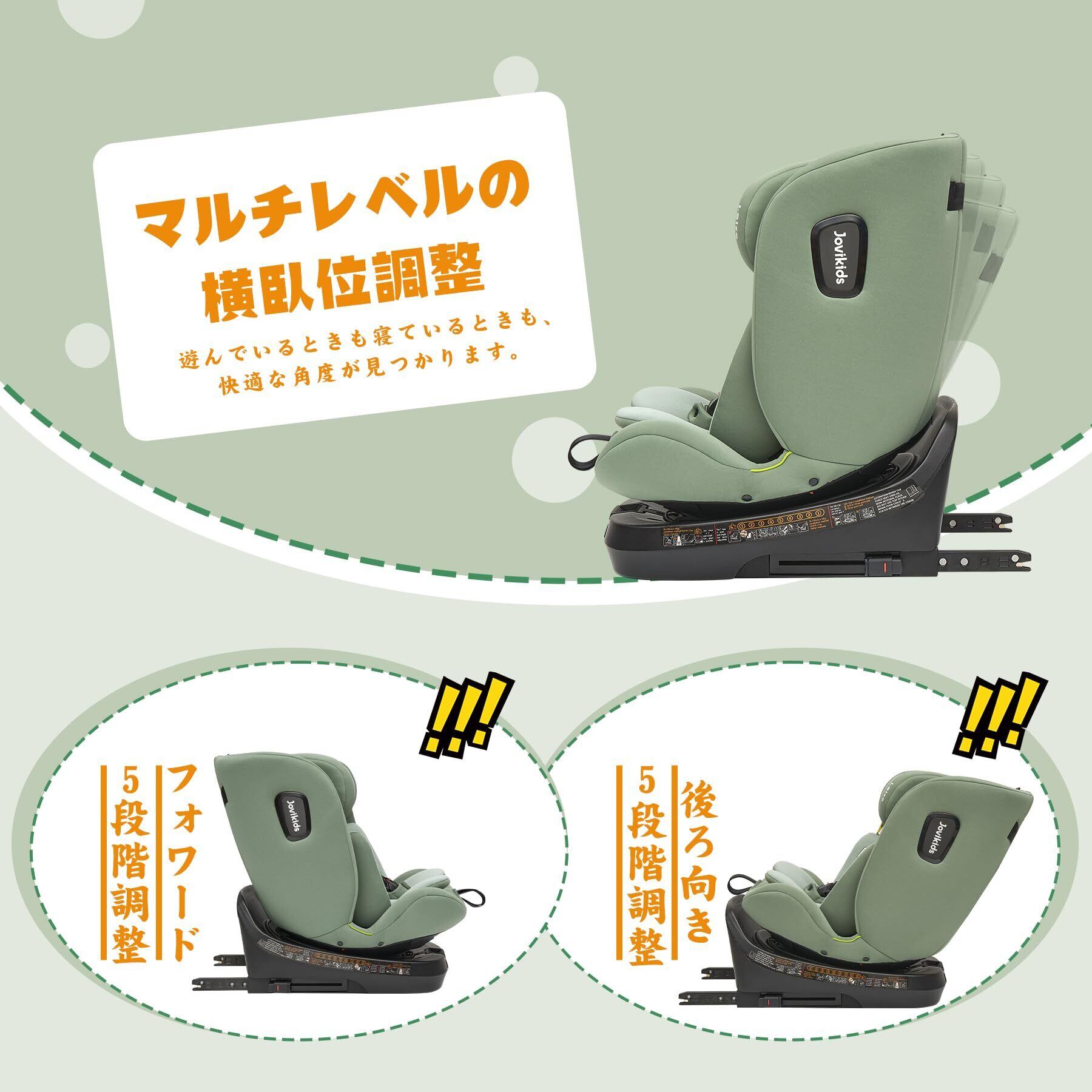 【特価セール】Jovikids チャイルドシート ISOFIX、 0か月~12歳頃 360°回転式 i-Size R129適合 新生児ベビーシート、ロングユースコンパクト、調整可能なライ角 (グリーン)