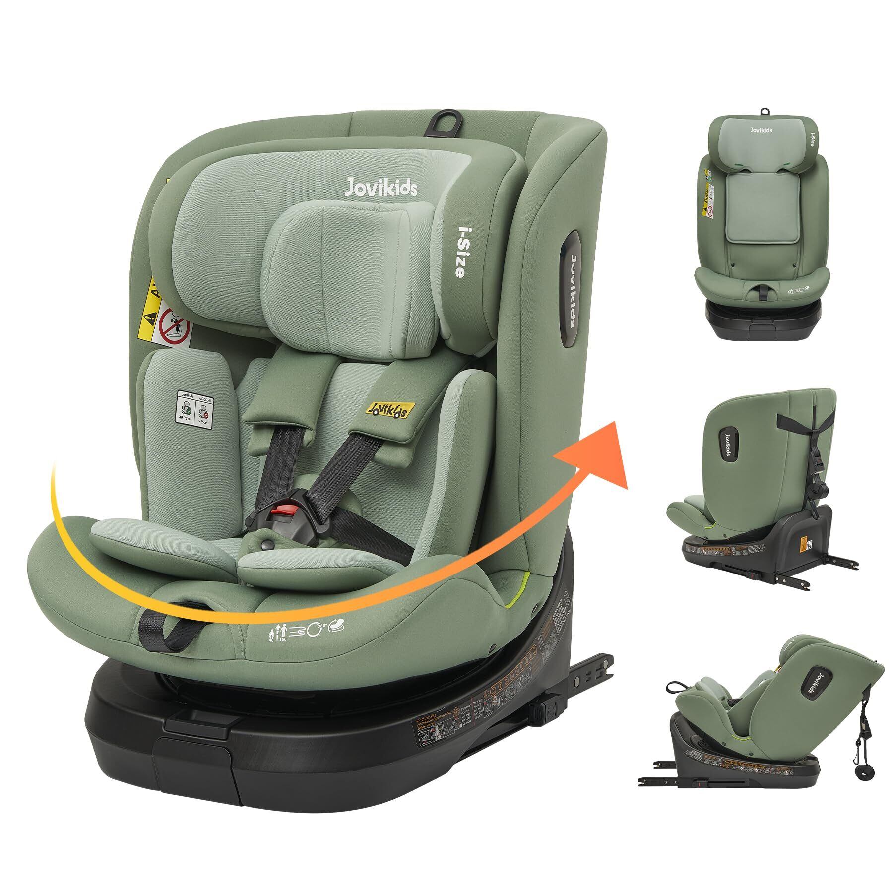 Jovikids チャイルドシート ISOFIX、 0か月~12歳頃 360°回転式 i-Size R129適合 新生児ベビーシート、ロングユースコンパクト、調整可能なライ角 (グリーン)