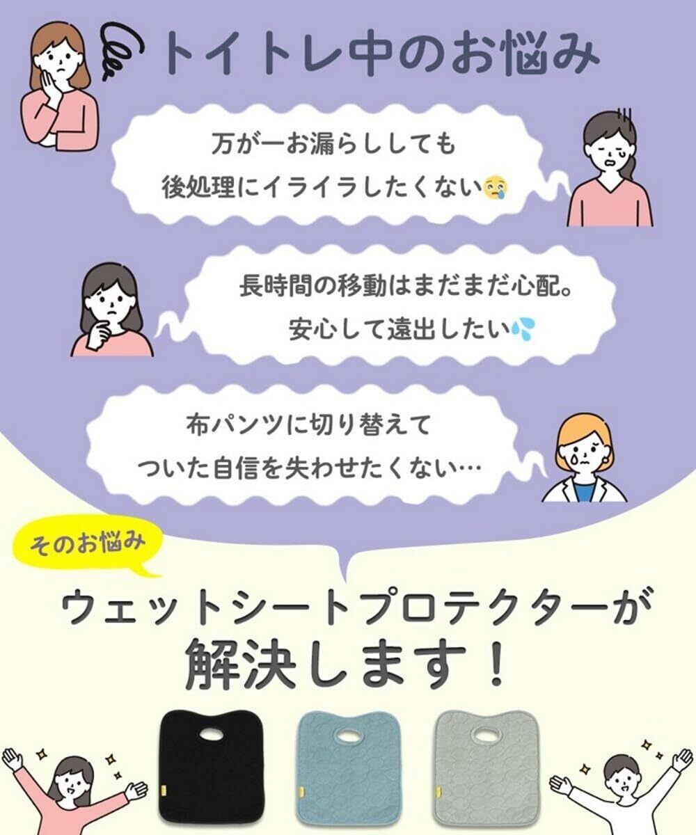 ●ウェットシートプロテクターを敷いておけば、チャイルドシートに浸み込んでおしっこの臭いがとれなくなるという最悪の事態を回避できます。 失敗にひどく落ち込むことはなくなり、失敗しても大丈夫、とお子さんを励ましながら親子でトイレトレーニングをしていくことができます。