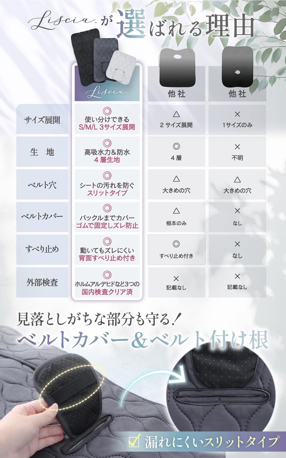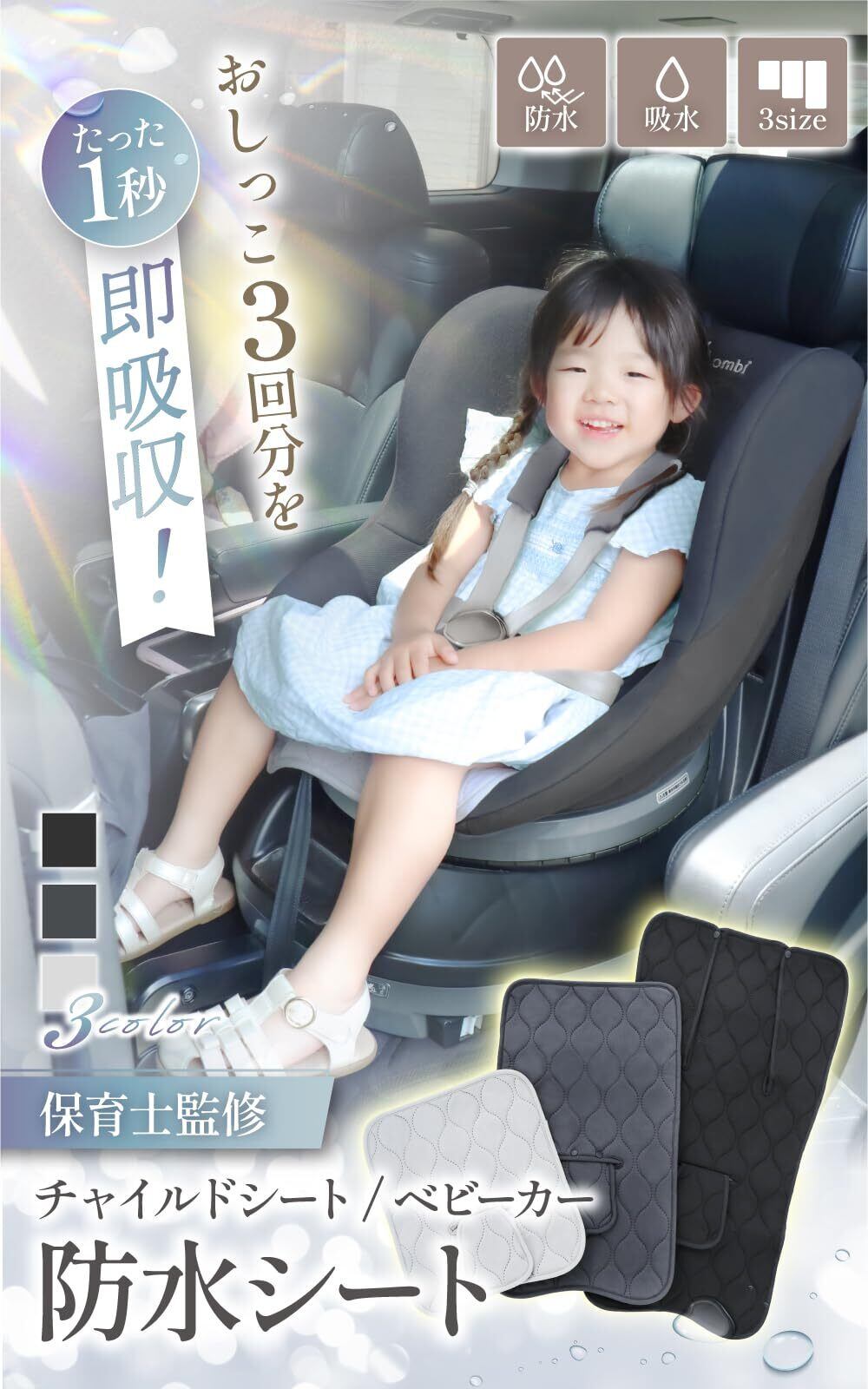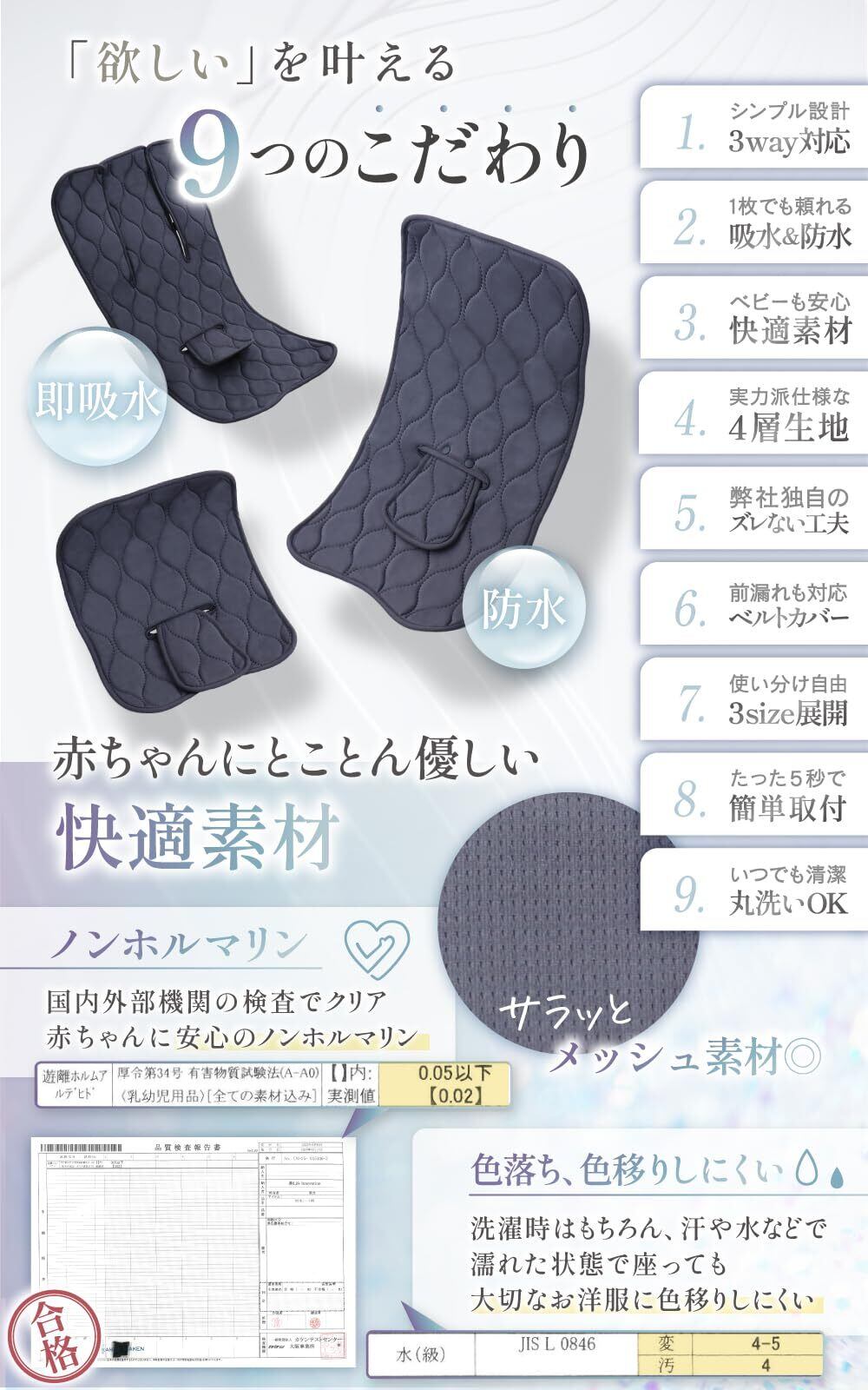 Liscia チャイルドシート 防水シート【保育士監修】 ベビーカー 防水 マット カバー 滑り止め おむつ漏れ お漏らし おしっこ 【 たった1秒で即吸水 】 (チャコール, M)
