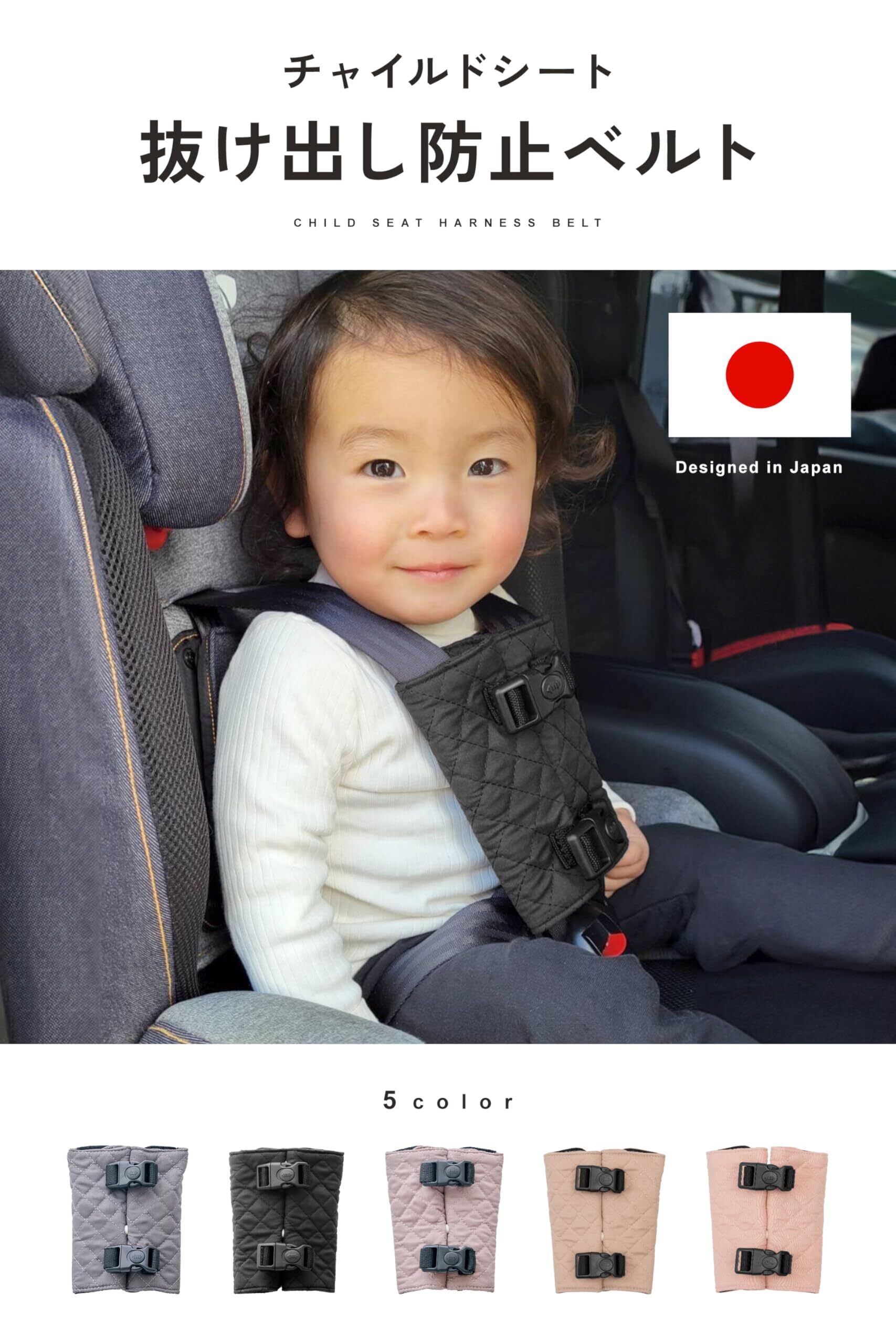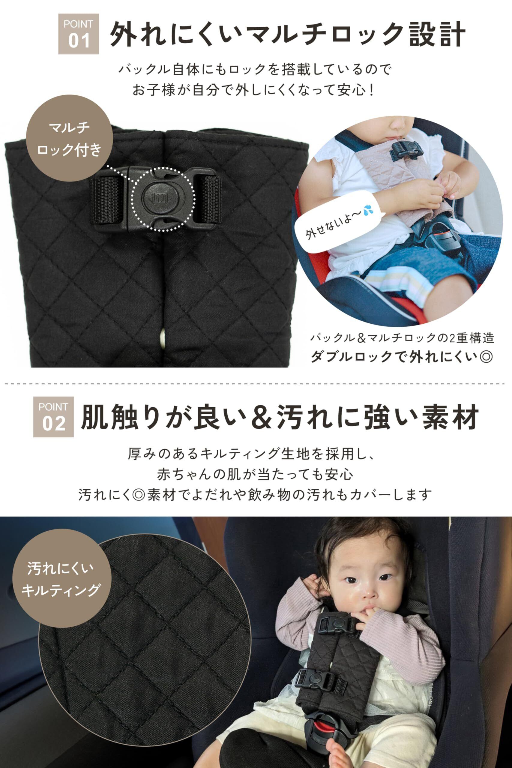 【ママたちで考案】 plunmoln チャイルドシート シートベルトカバー 抜け出し防止 ベルトハーネス 安全シート 車 ベビーカー 赤ちゃん 子ども 脱出防止 (ブラック)