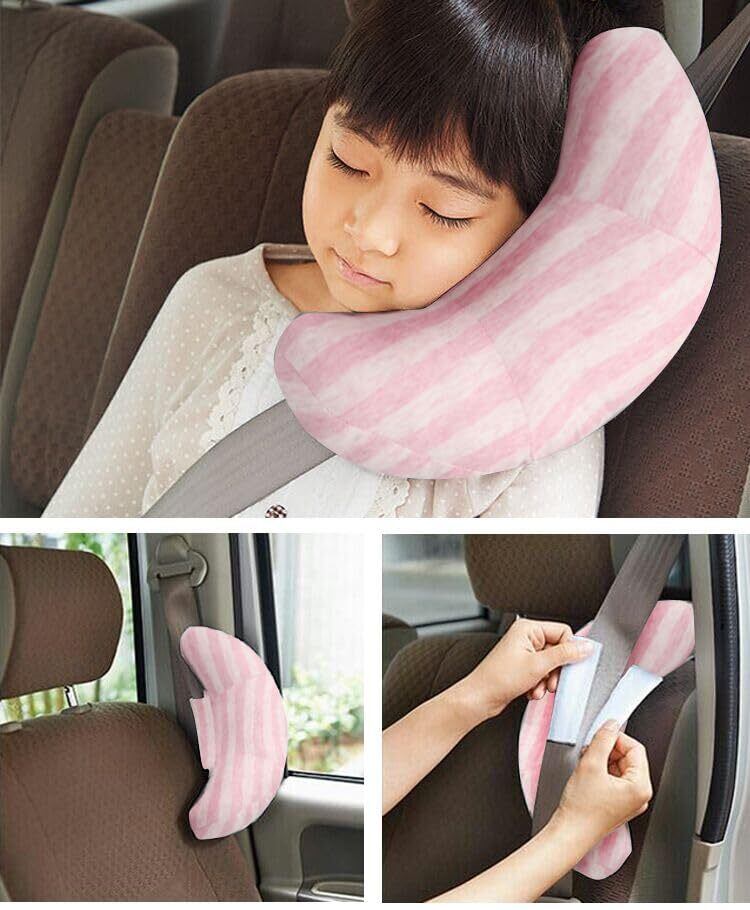 【数量限定】ストライプ 子供用シートベルト枕 チャイルドシート用 首枕 ベビーカー 携帯枕 旅行枕 かわいい ふわふわ 快適 キッズ シートベルトカバー ネックサポート 枕 肩 首 取り付け簡単 旅行 お出かけ 車用 カー用品
