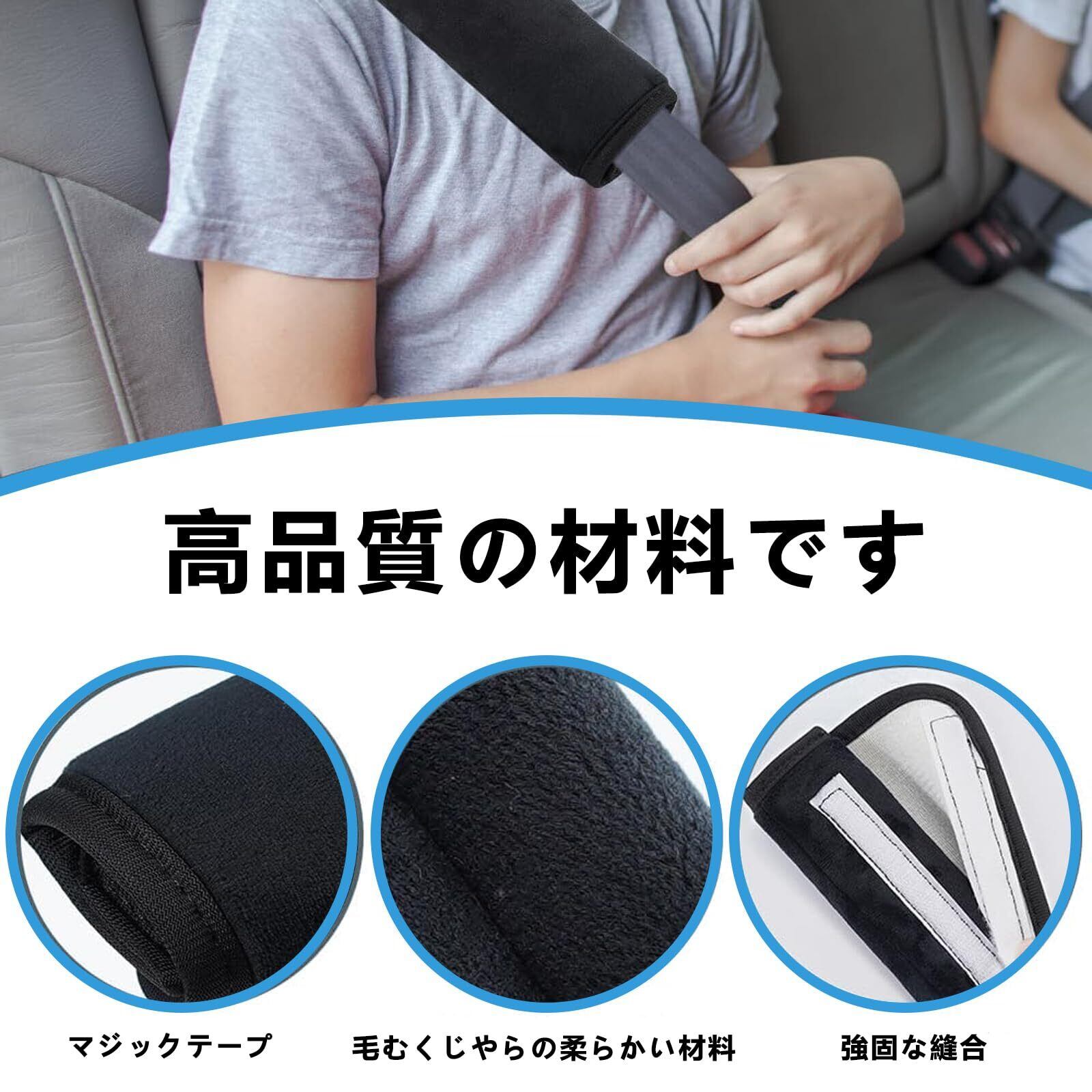 黒い4つ シートベルト ストッパー シートベルトカバー シートベルトパッド 車用品 取り付け簡単で柔軟で快適 シートベルトカバー 子供 肩と首を保護します 圧迫感の軽減