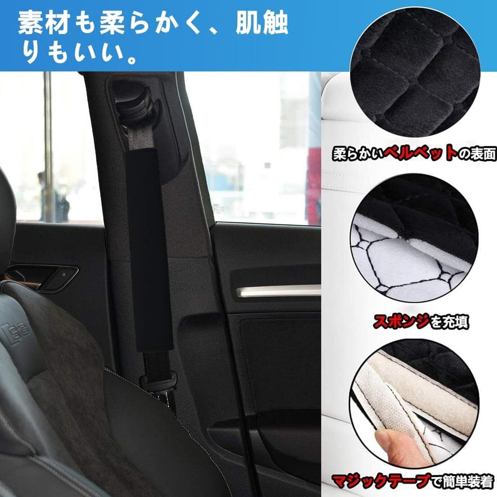 【高品質】シートベルト ストッパー 素材も柔らかく、肌触りもいい。あらゆる季節に適した強力な繊維織物、ベルトの刺激と摩擦を防ぐための超柔らかいベルベットのおしゃれな生地でできています。シートベルトカバー あらゆる季節に適した強力な繊維織物、ベルトの刺激と摩擦を防ぐための超柔らかいベルベットのおしゃれな生地でできています。