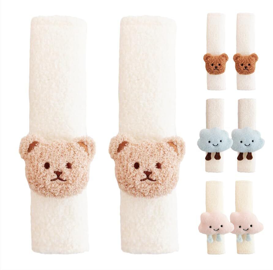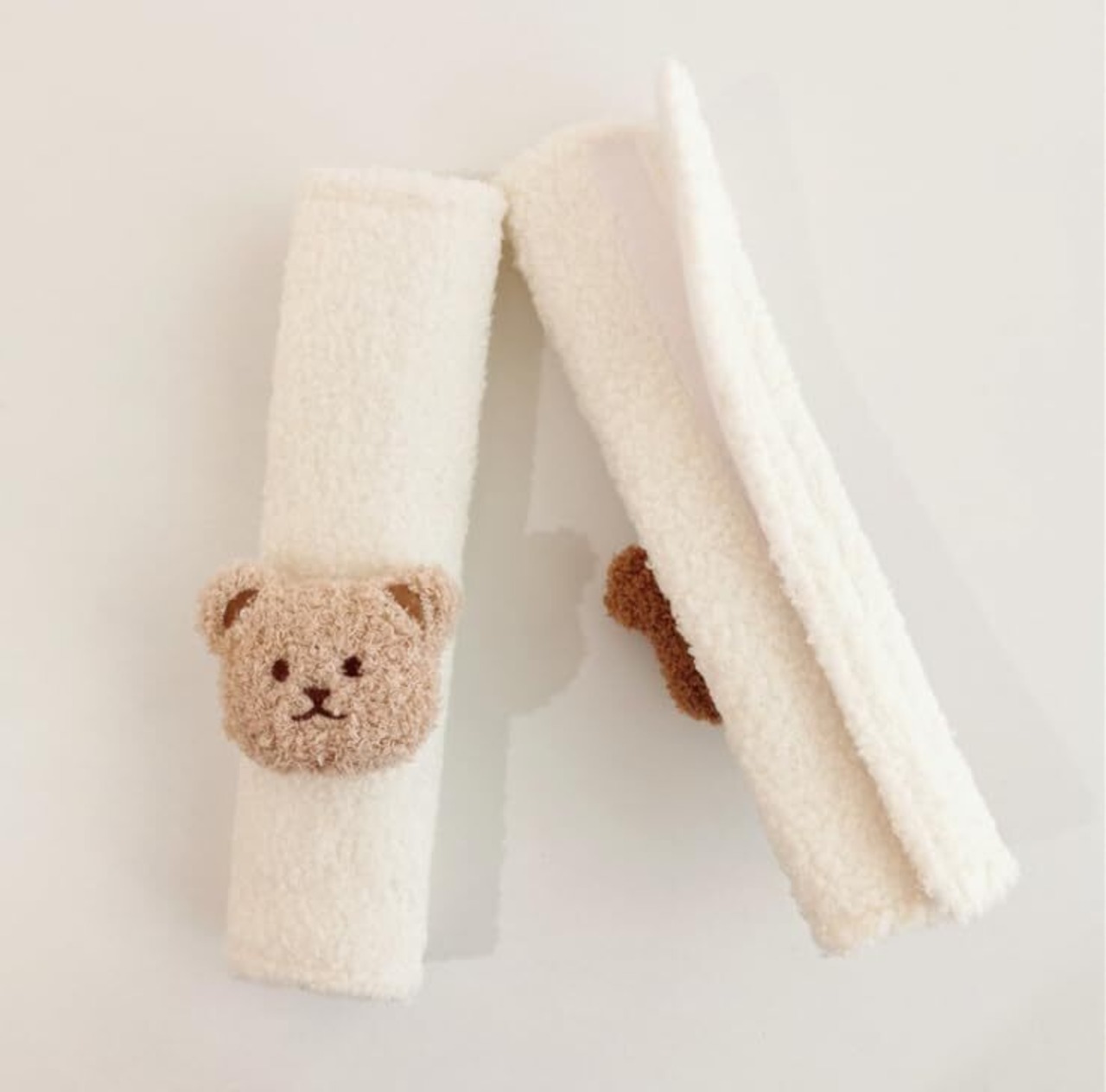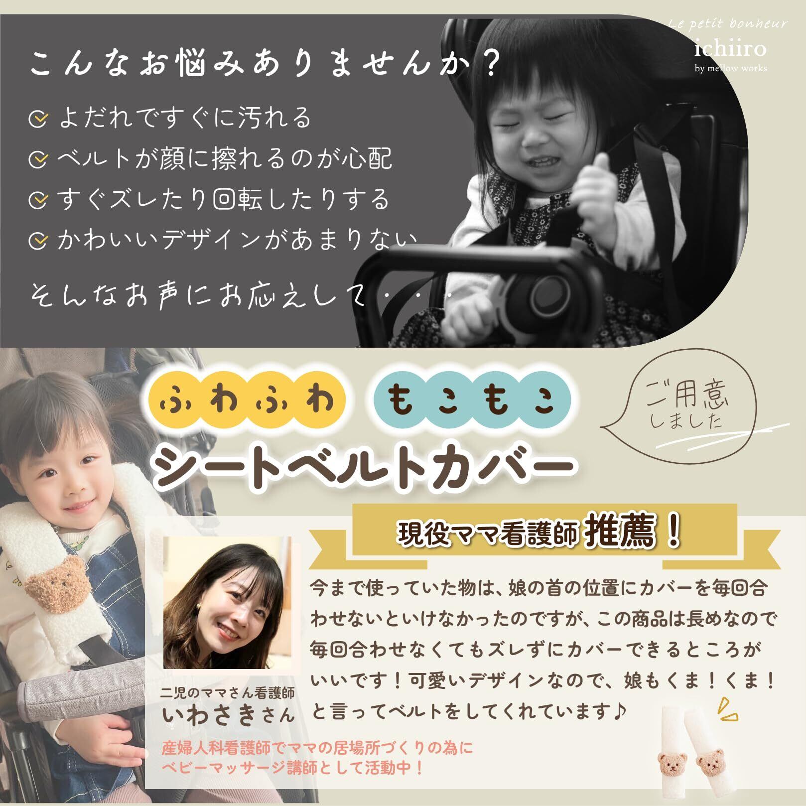 【新着商品】【現役ママ看護師推薦】 シートベルトカバー2個セット シートベルトクッション チャイルドシートカバー ベビーカーベルトカバー[かわいい ふわもこくまさん] 車 キッズ 子供 大人 ichiiro (ベージュくまさん)