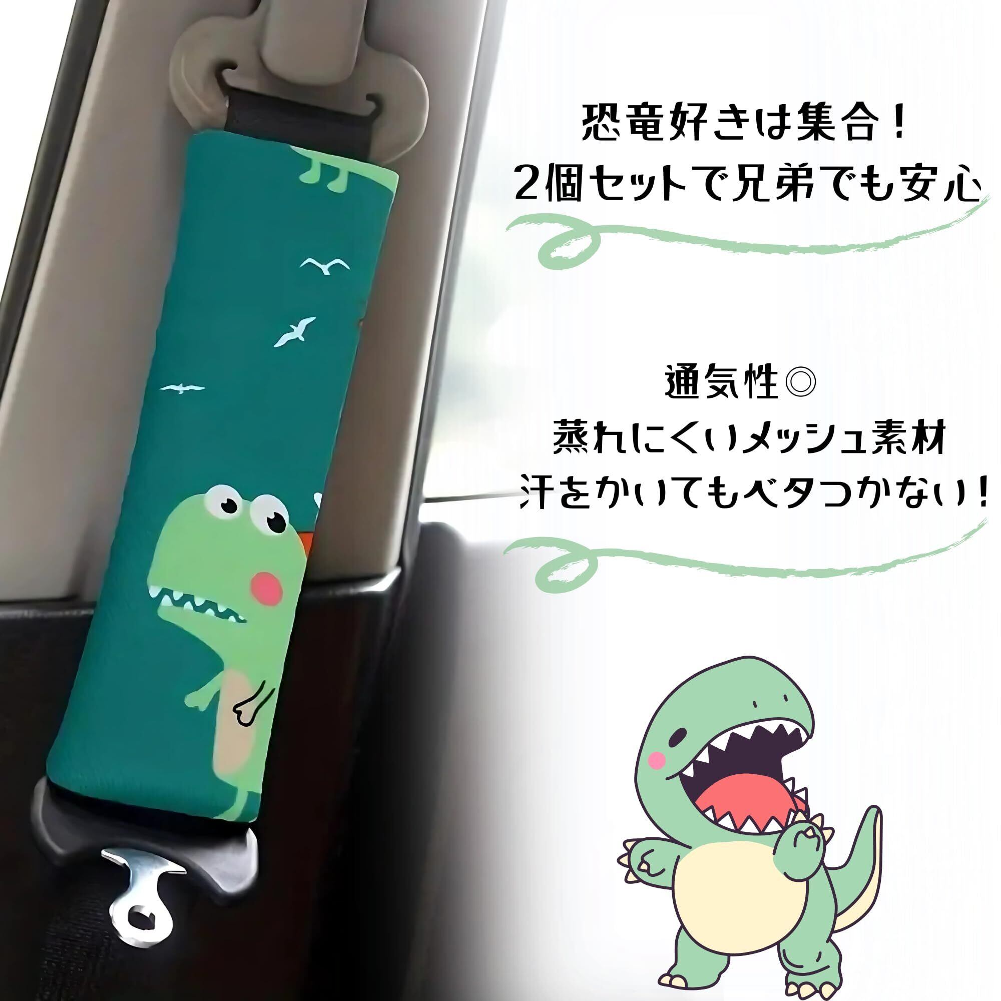 【快適良品スヤスワ】シートベルトカバー 子供 恐竜 2個セット 可愛い メッシュ おしゃれ 洗える