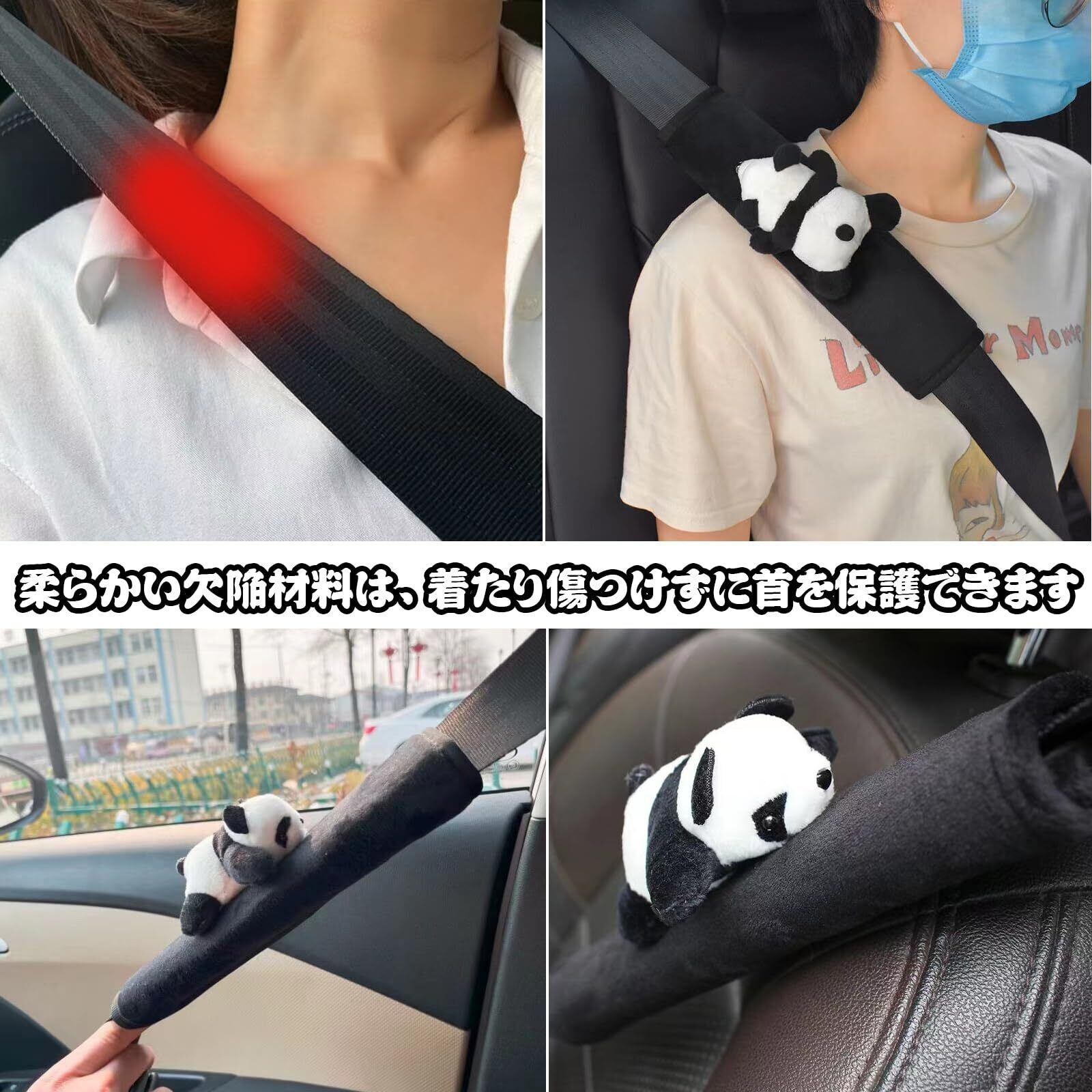 【特価商品】シートベルトカバー ネックピロー かわいい ハンドルカバー かわいいパンダ ぬいぐるみ シートベルトパッド 肩当てパッド 肩保護 旅行 運転 車用品 アクセサリー5セット