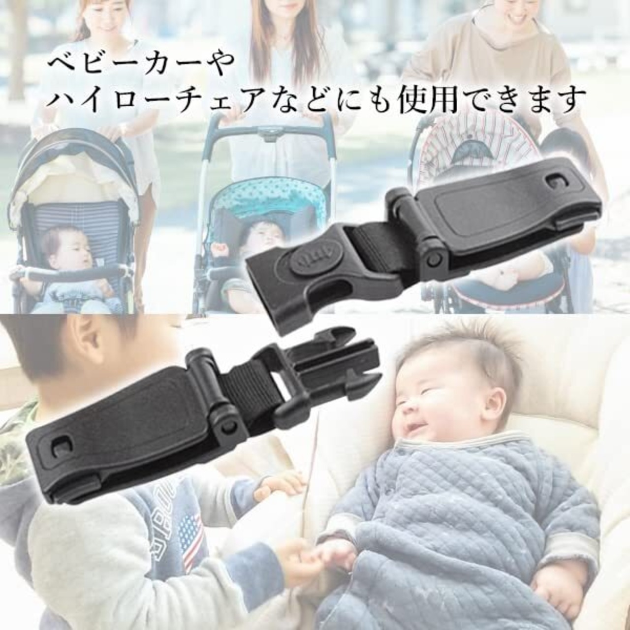 ベビーカーやハイローチェアなどにも使用できます。