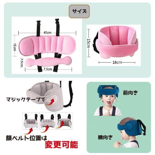 車内座席のヘッドレストやチャイルドシートに装着します。開閉簡単なバックル仕様です、取り付けと取り外しには便利です。さらに、水洗い可能で、お手入れも簡単です。表地は柔らかくて手触りがいい布素材で、子供のフェイスと接触しても安心です。充填物はPP綿で、よいクッション性あり、変形しにくいです。【カラー】グレー・ブルー・ピンク