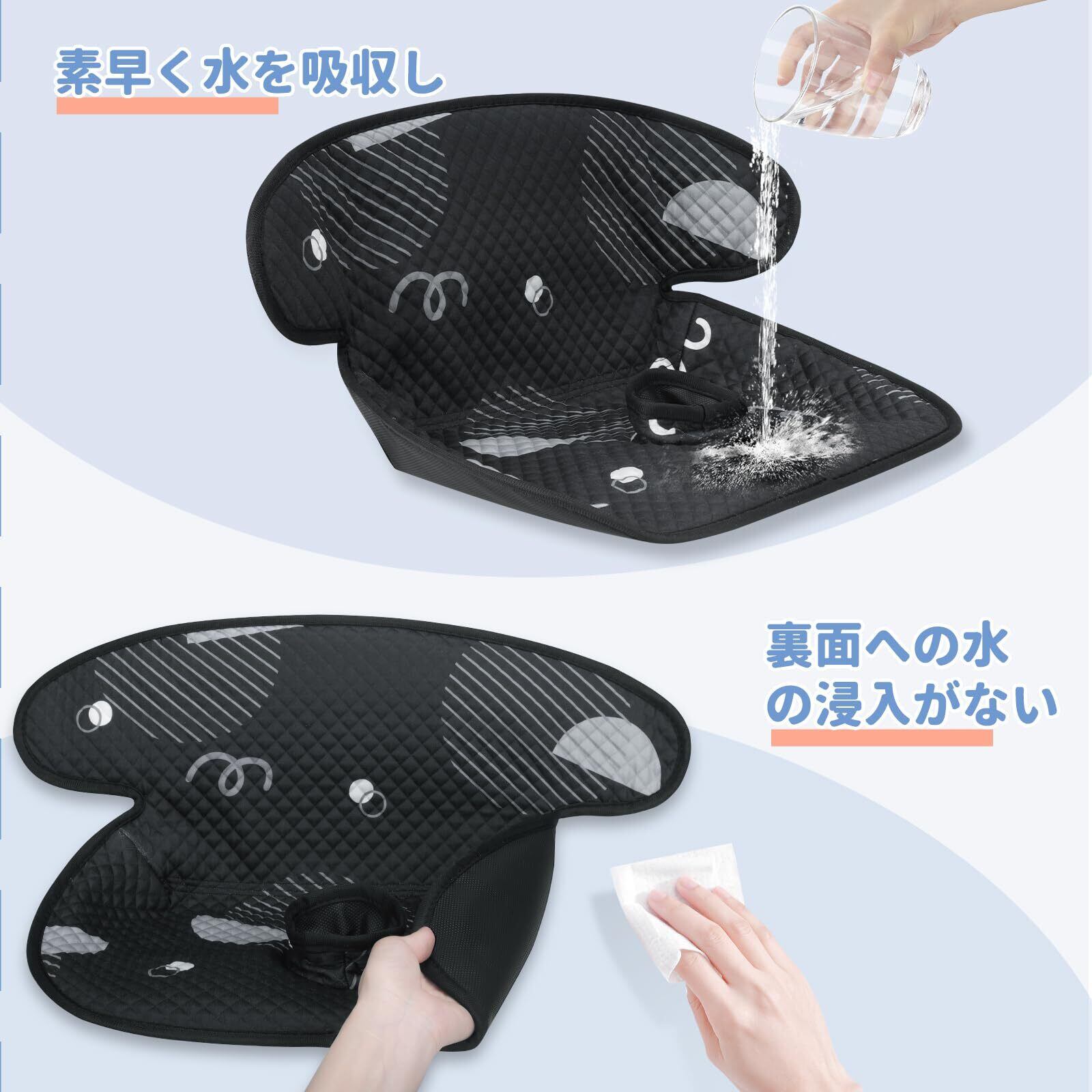 Azamia チャイルドシート 防水シート ベビーカー 防水おもらしマット おしっこシート 通気性 滑り止め チャイルドシート プロテクター 赤ちゃん 子供用 可愛い おむつ替えシート 漏れ防止 丸洗い可能 (ブラック, 2点)