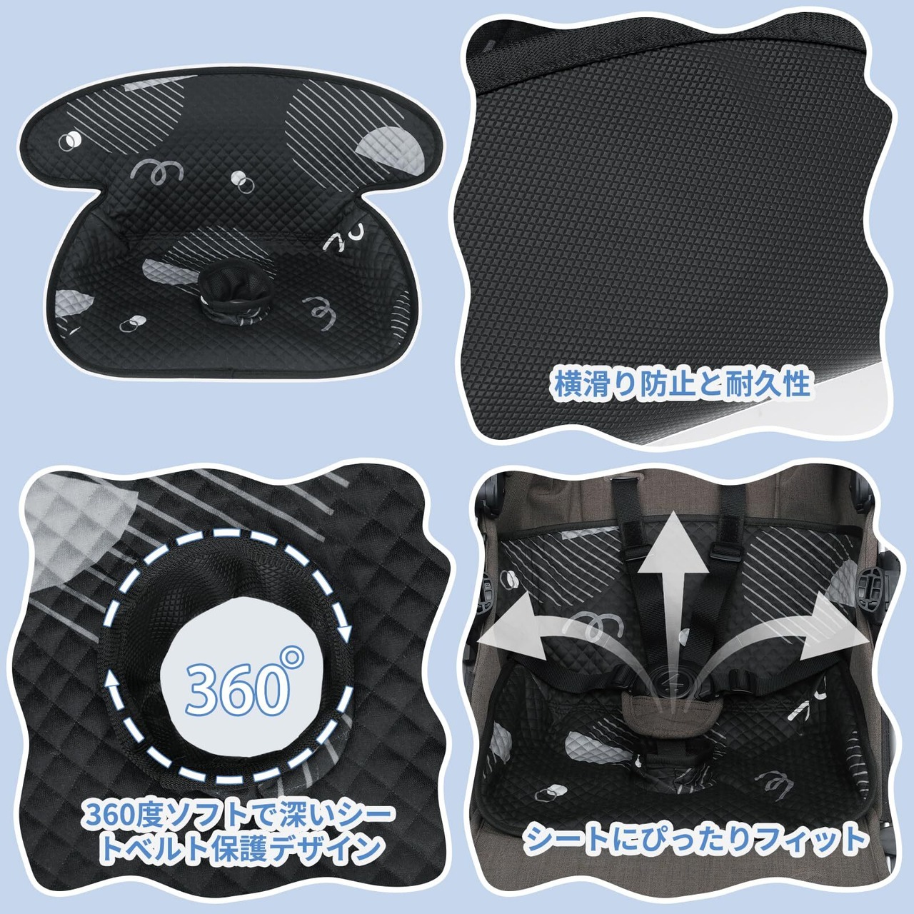 【新着商品】Azamia チャイルドシート 防水シート ベビーカー 防水おもらしマット おしっこシート 通気性 滑り止め チャイルドシート プロテクター 赤ちゃん 子供用 可愛い おむつ替えシート 漏れ防止 丸洗い可能 (ブラック, 2点)