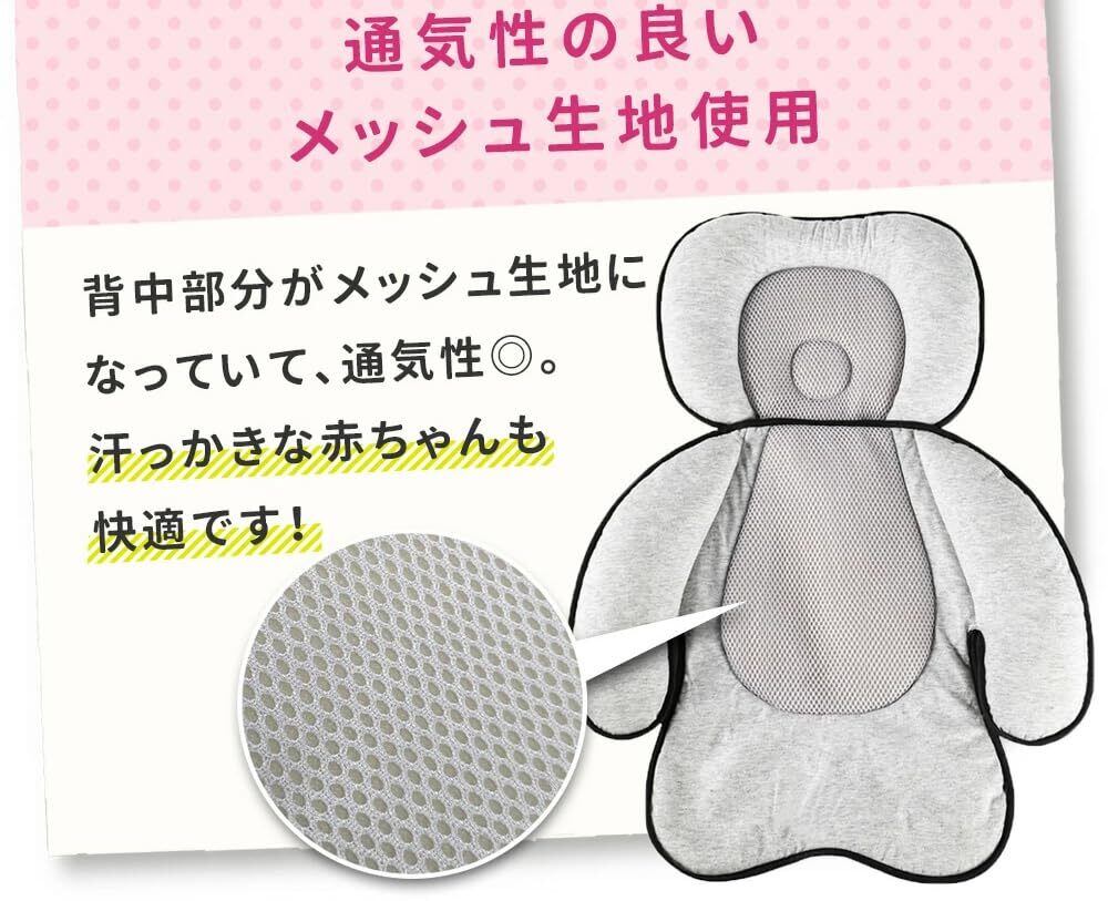 【通気性の良いメッシュ生地使用】頭と背中部分がメッシュ生地で通気性抜群です。汗っかきな赤ちゃんも快適。