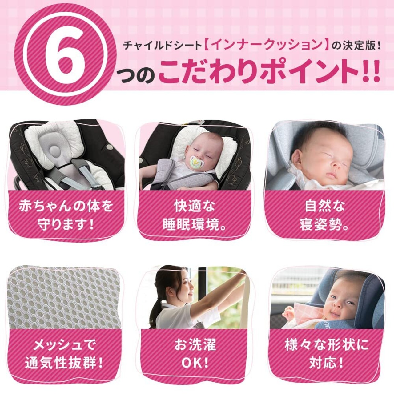 【汎用型のインナークッションです】汎用型なので、チャイルドシート、ベビーシートなど種類を問わず使えるマルチタイプです。