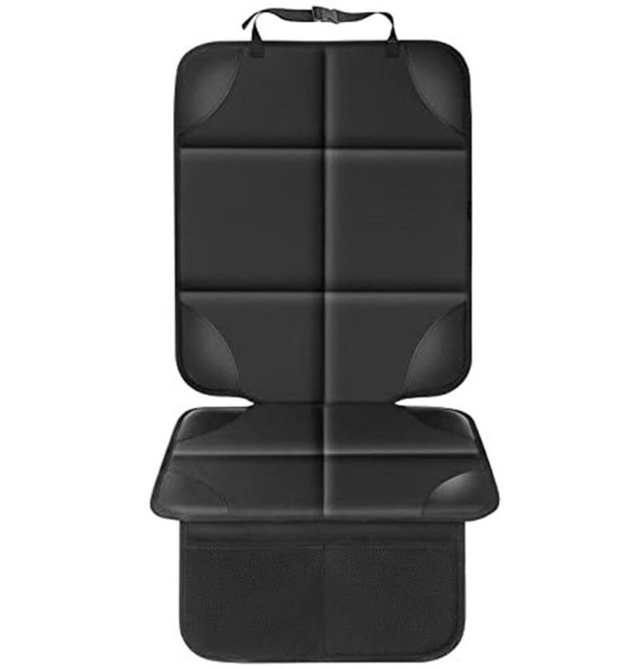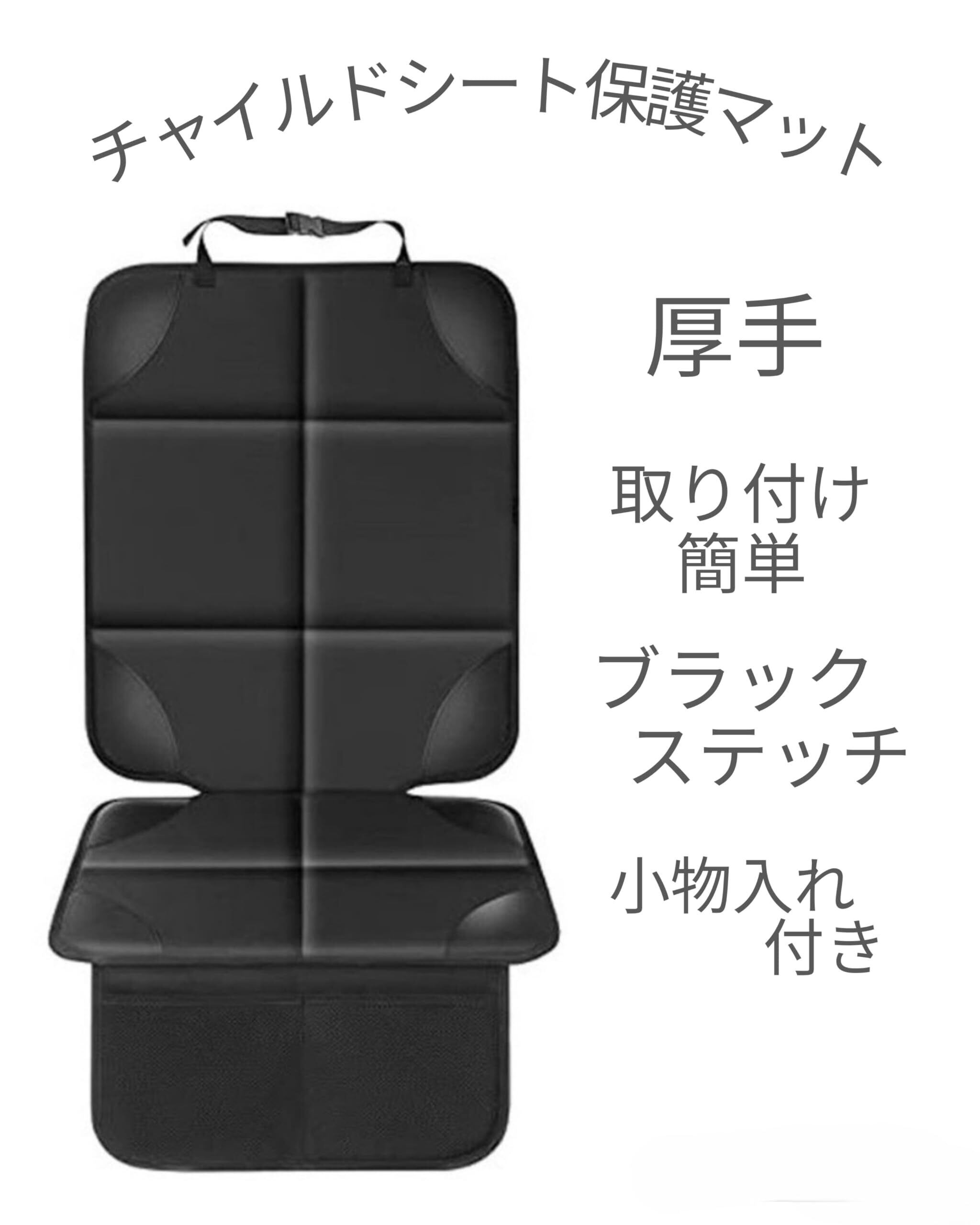 [Ahsa2nd]羽付きチャイルドシート保護マット ペットゲージ保護マット 極厚カバー 小物収納バック付き シートバックポケット (羽なし ブラック)