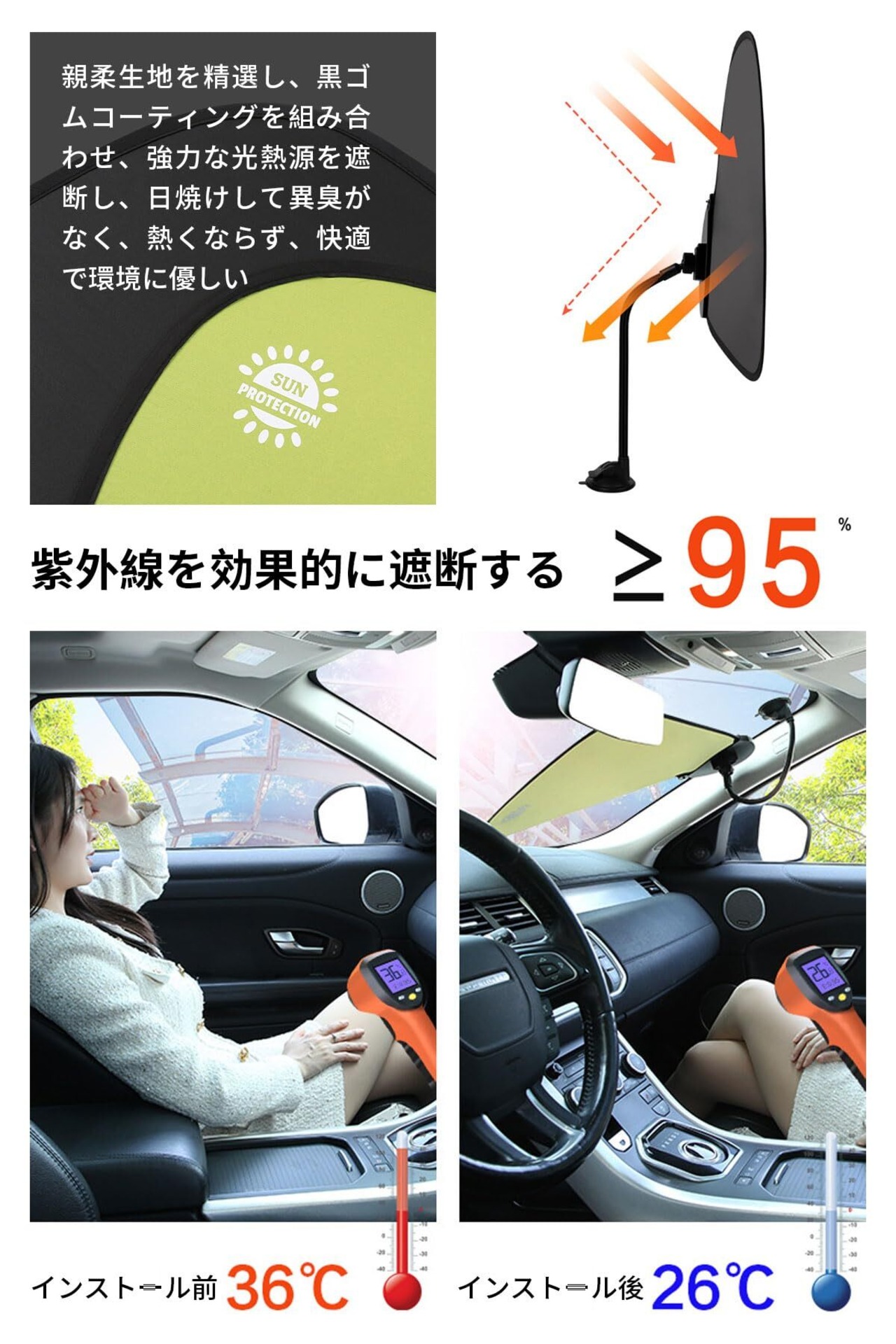 【角度自由】ハンドルブラケットは自由に折り曲げ可能、日光の方向に合わせて位置を調節できます。アームにより角度調節が自在にでき、簡単に車のグリップやベビーカーに取り付け可能、吸板式のものは自動車のガラスや各種平面テーブルに取り付けることができ、使いやすい。収納時はコンパクトに折りたたむことができるサンシェードです、だから携帯に便利です。