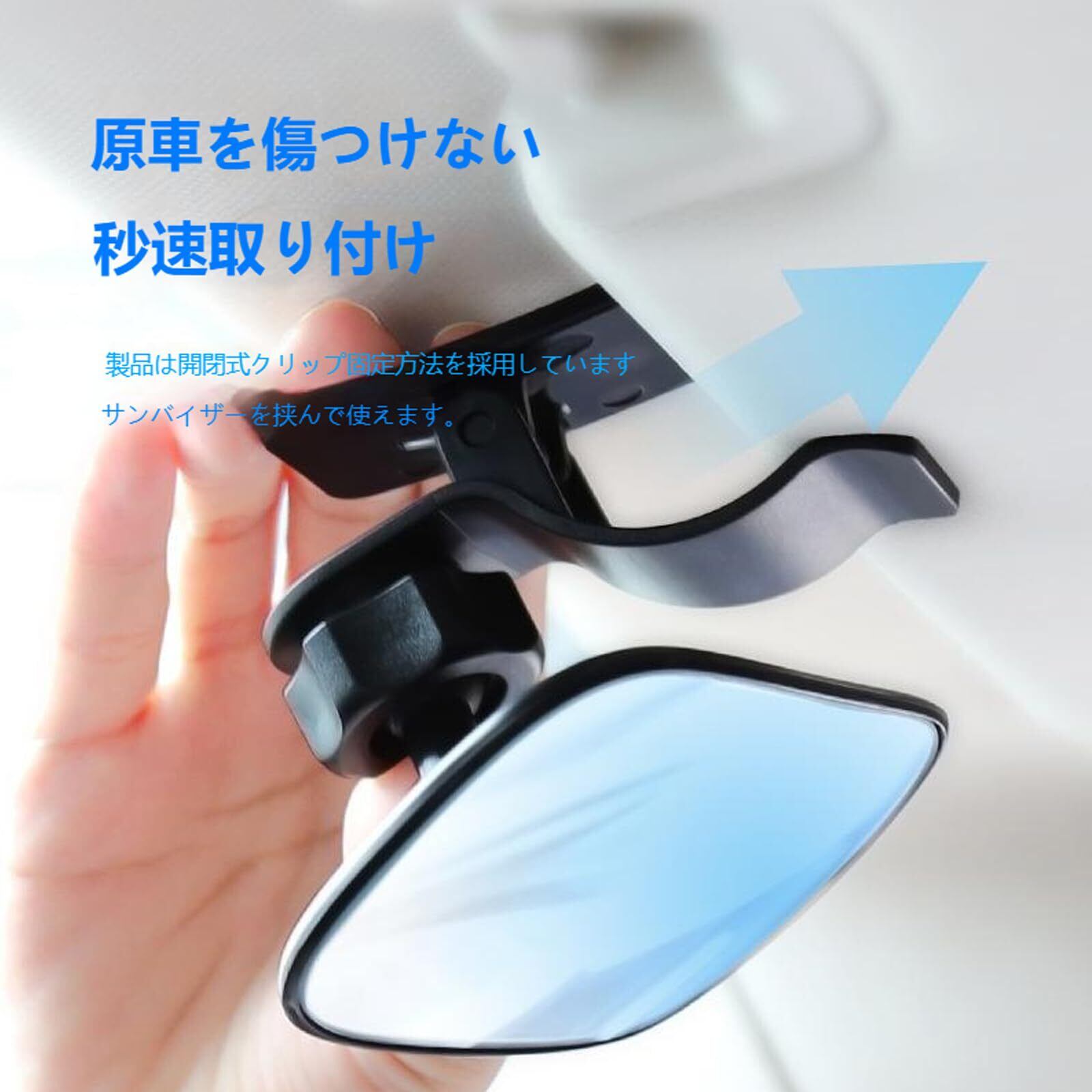 特徴:鏡面は曲面になっており広く後部を見守れます。サンバイザーを挟むだけの簡単取付で後部座席の赤ちゃんを確認できます