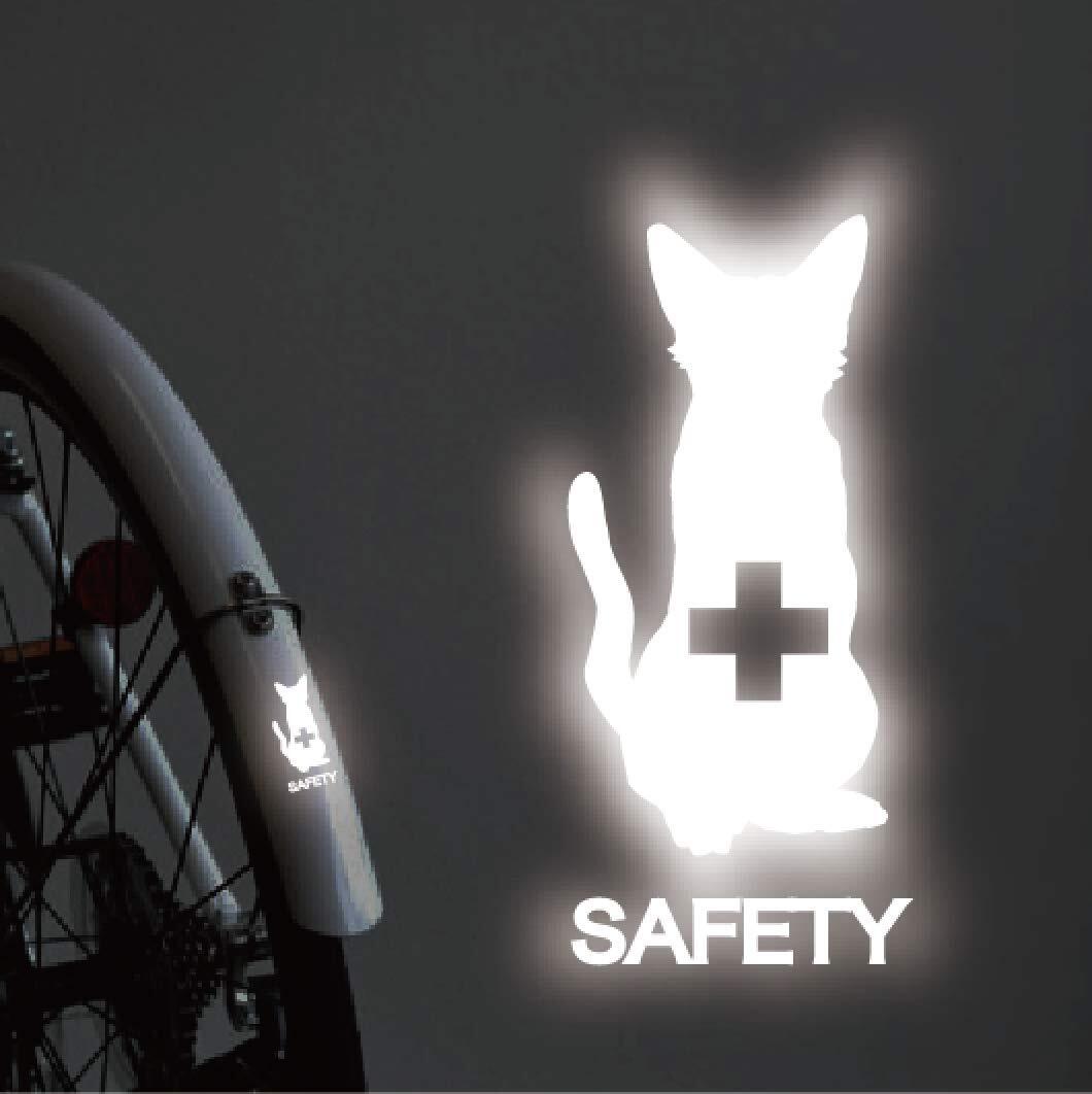 【数量限定】<+R>ねこ反射ステッカー(SD)白・自転車・ベビーカー・杖・ランドセル