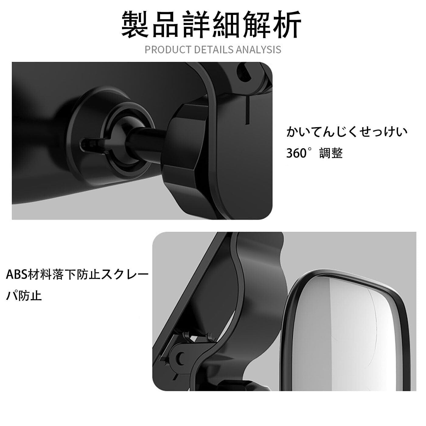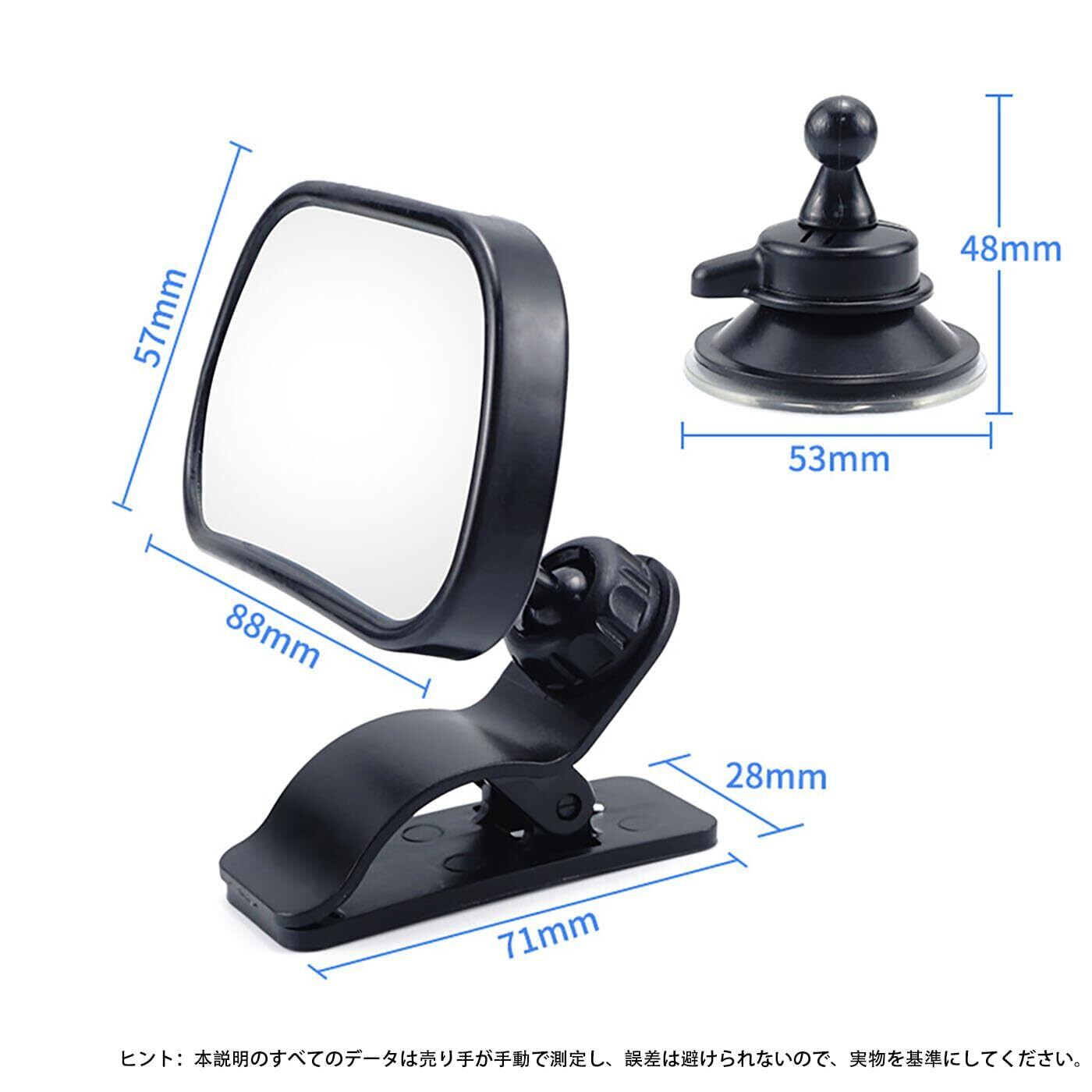 【製品規格】サイズ:89 mm×55 mm、材質:ガラス鏡面+ABSプラスチック、カラーからー:ブラックくろ;タイプ:クランプ式、設置場所:日除け窓、入数:1個