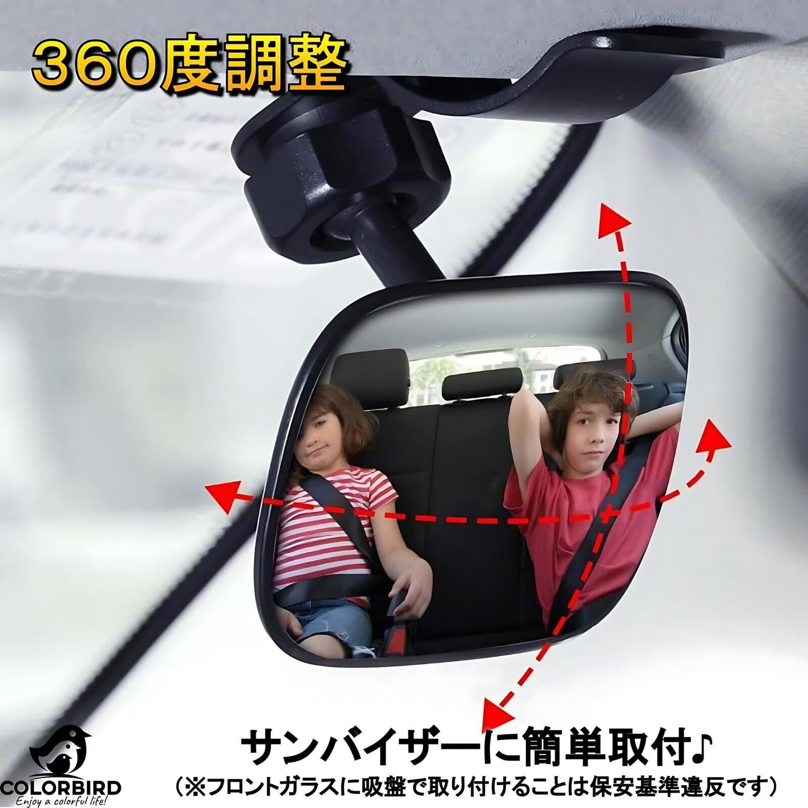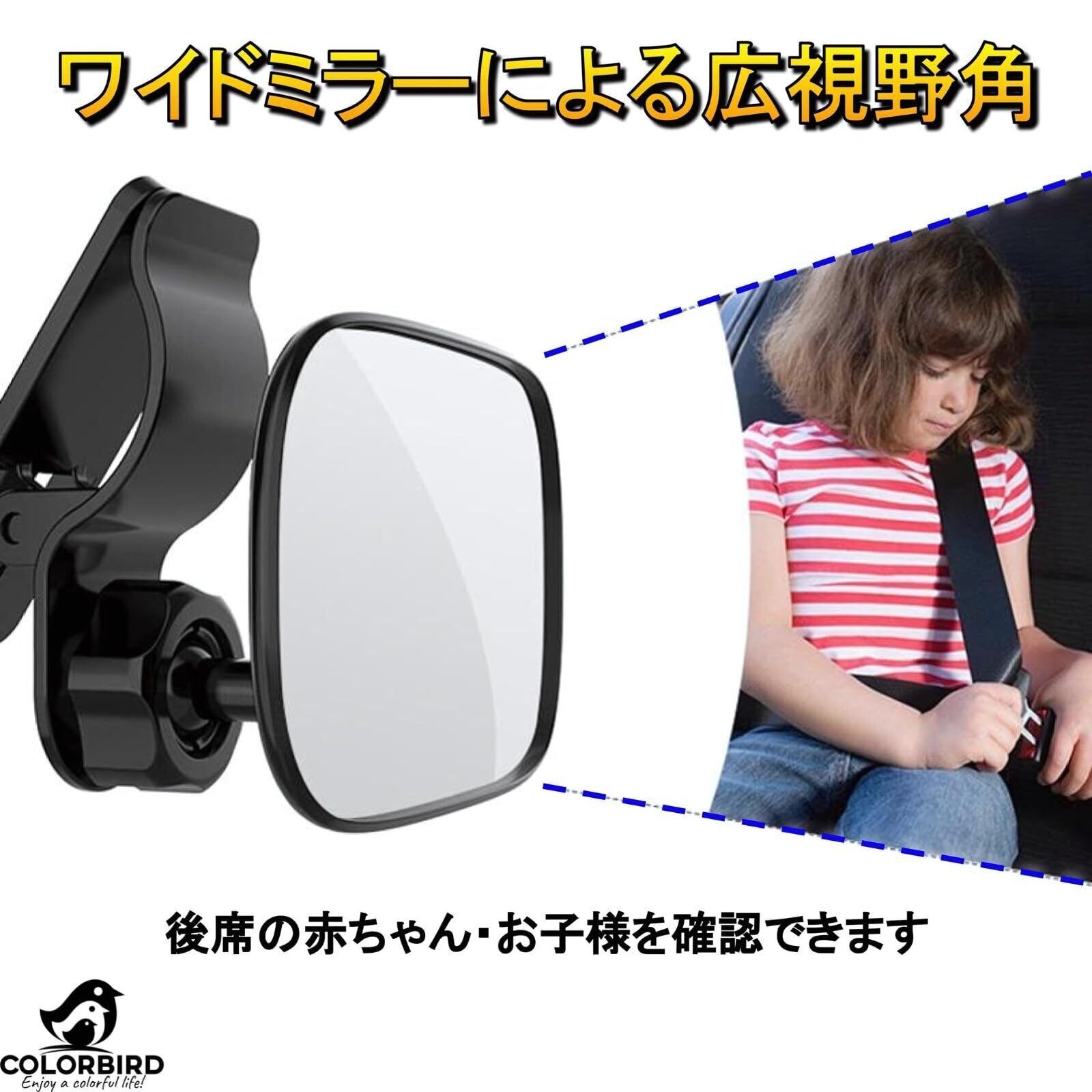 COLORBIRD 補助ミラー ベビーミラー 補助ルームミラー 車 ワイド バックミラー 赤ちゃん チャイルドシート