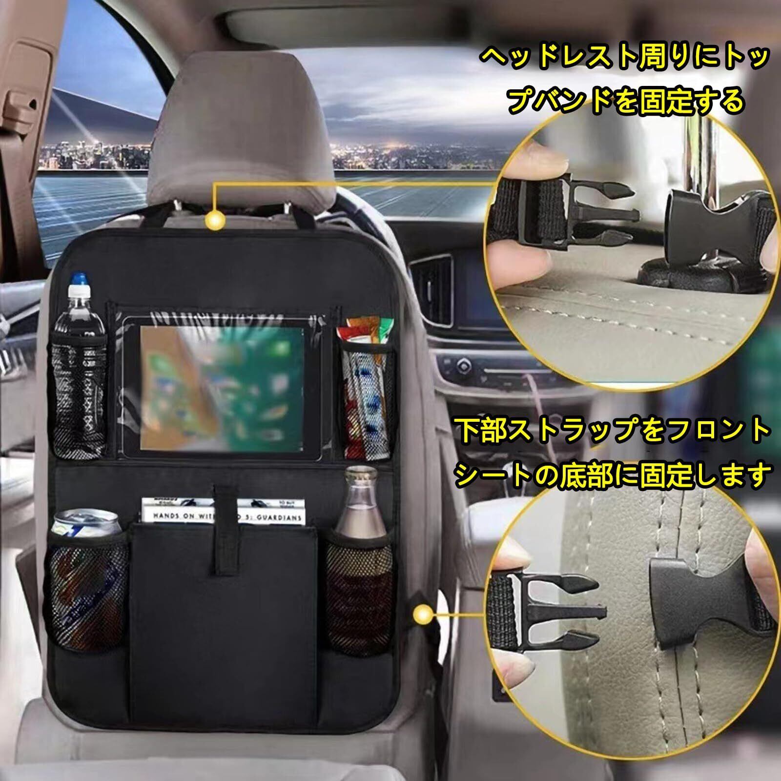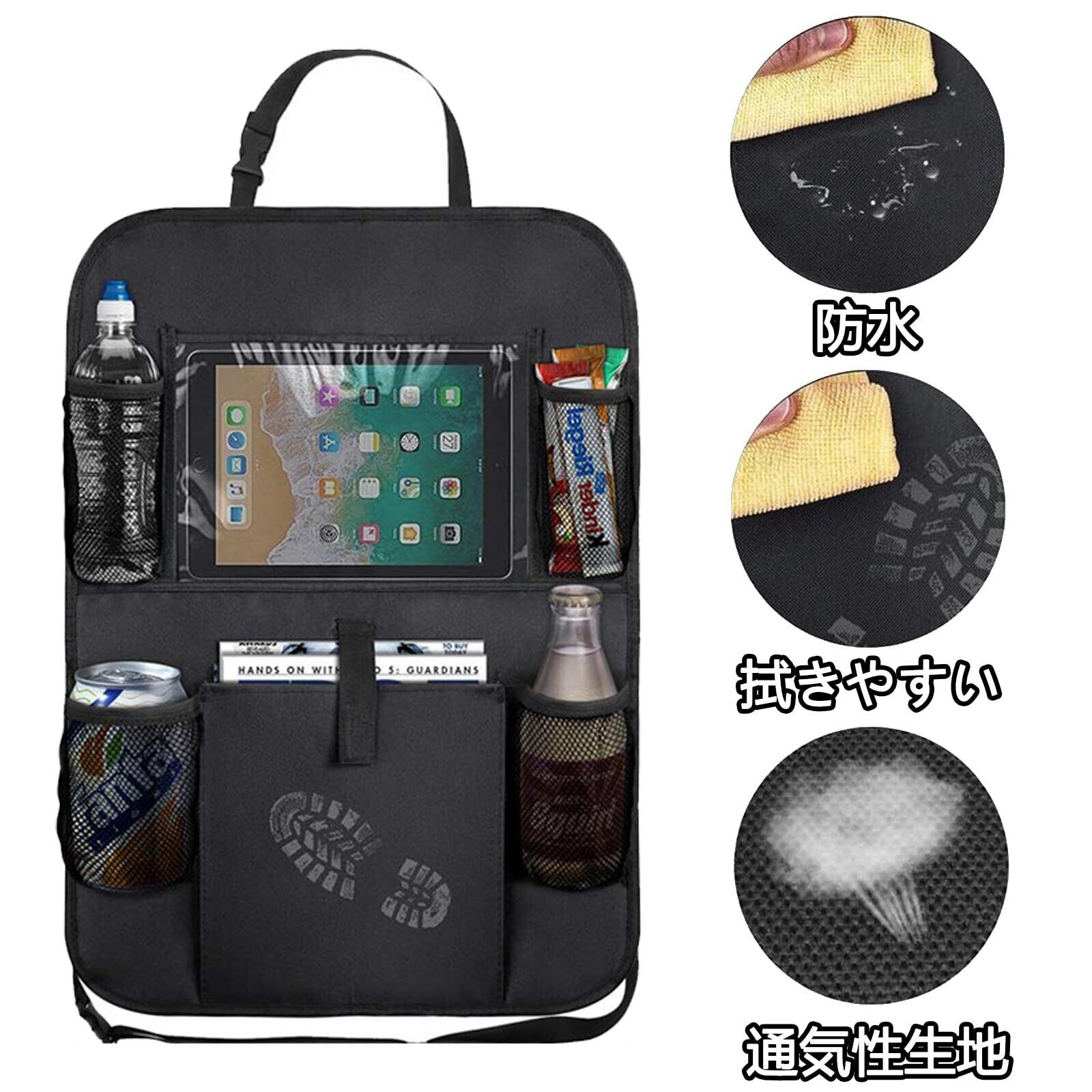 シートバックポケット 車 収納ポケット 多機能 後部座席 車用収納ポケット 耐久性 大容量 荷物入れ pad収納可能 子供用品 防水防汚 キックガード シートプロテクション 1個入り