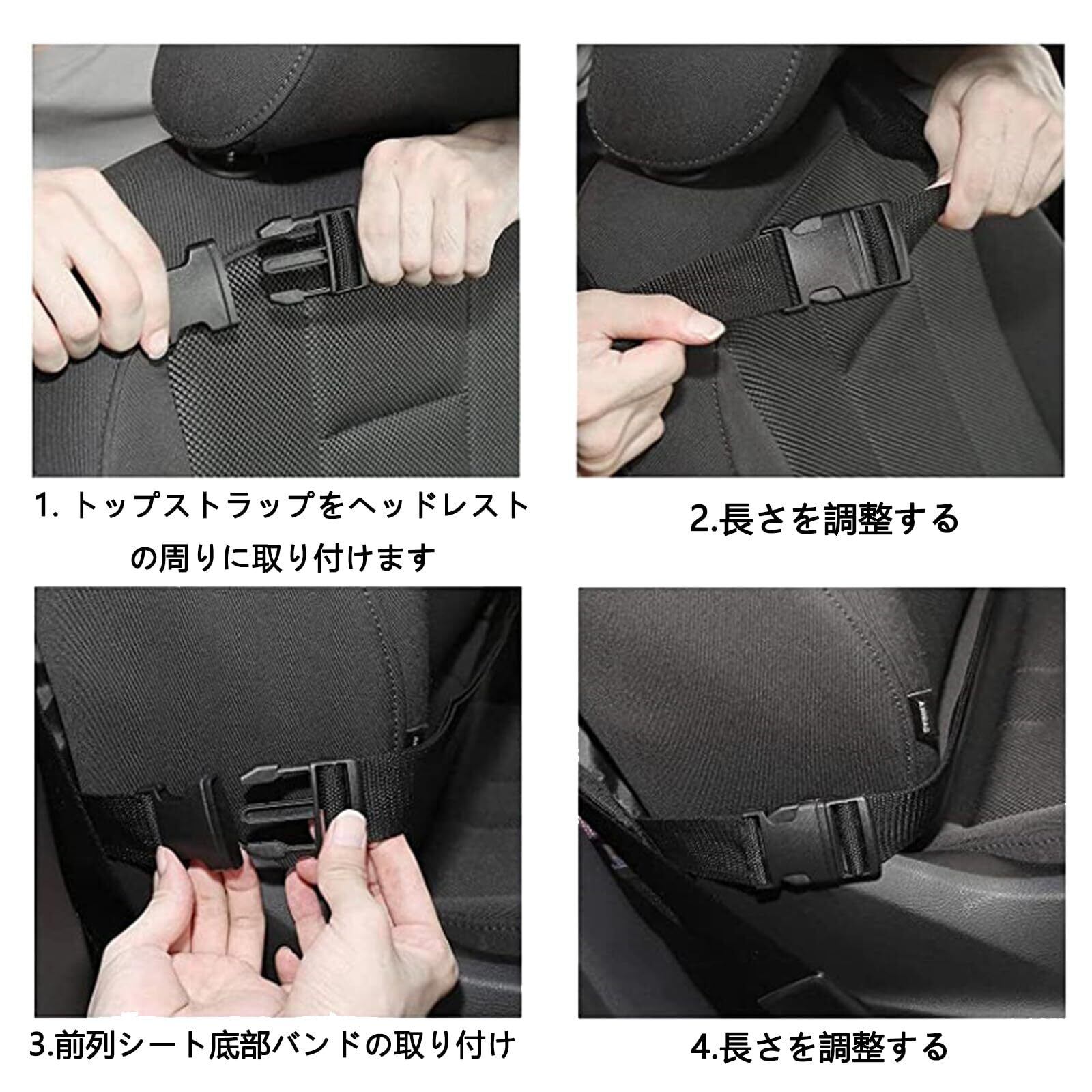 【取り付け簡単】バックル方式で椅子の背に固定され、調節可能なストラップが装備されており、取付には一切工具も必要なく,ベルトをヘッドレストに通すだけの簡単装着できる、必要に応じて収納袋の位置と高さを調整し、最適な使用体験を得ることができる。多くのタイプの車にも使用ができる。