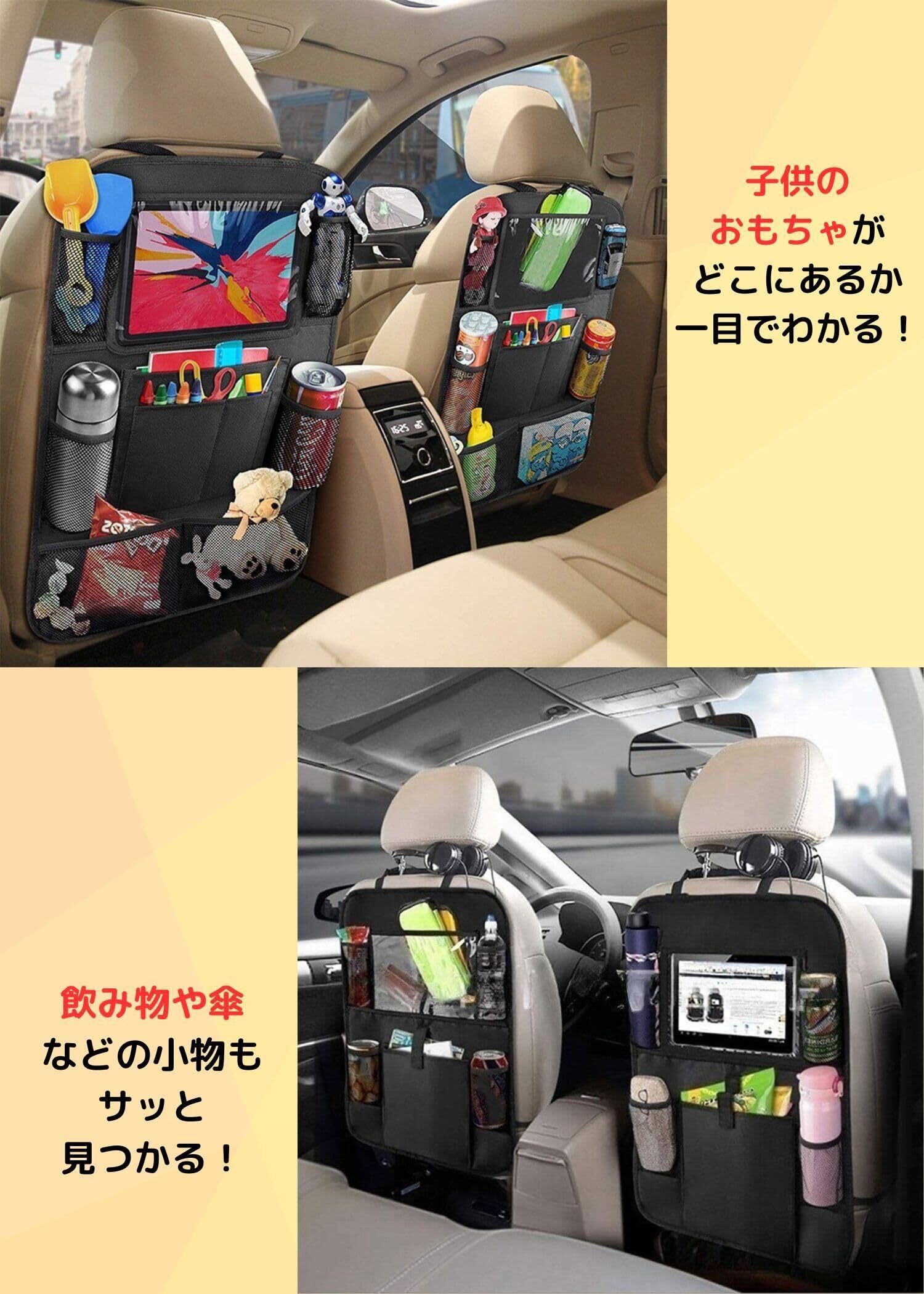 【タブレットも収納できる透明ホルダー】長距離ドライブの救世主!クリアポケットはタブレットホルダーとして使えるので、お子様が後部座席で動画を楽しむのに最適。走行中の子供の退屈対策にも大活躍です!