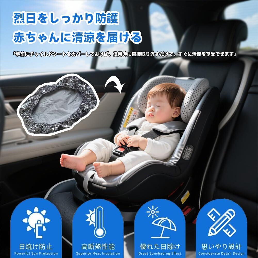 赤ちゃんを車内の熱や紫外線から保護 通気性で暑さ対策|旅行・お出かけに最適なチャイルドシートアクセサリー シルバーカラー UVカット&遮熱 ベビーシート用サンシェード(収納袋付き)