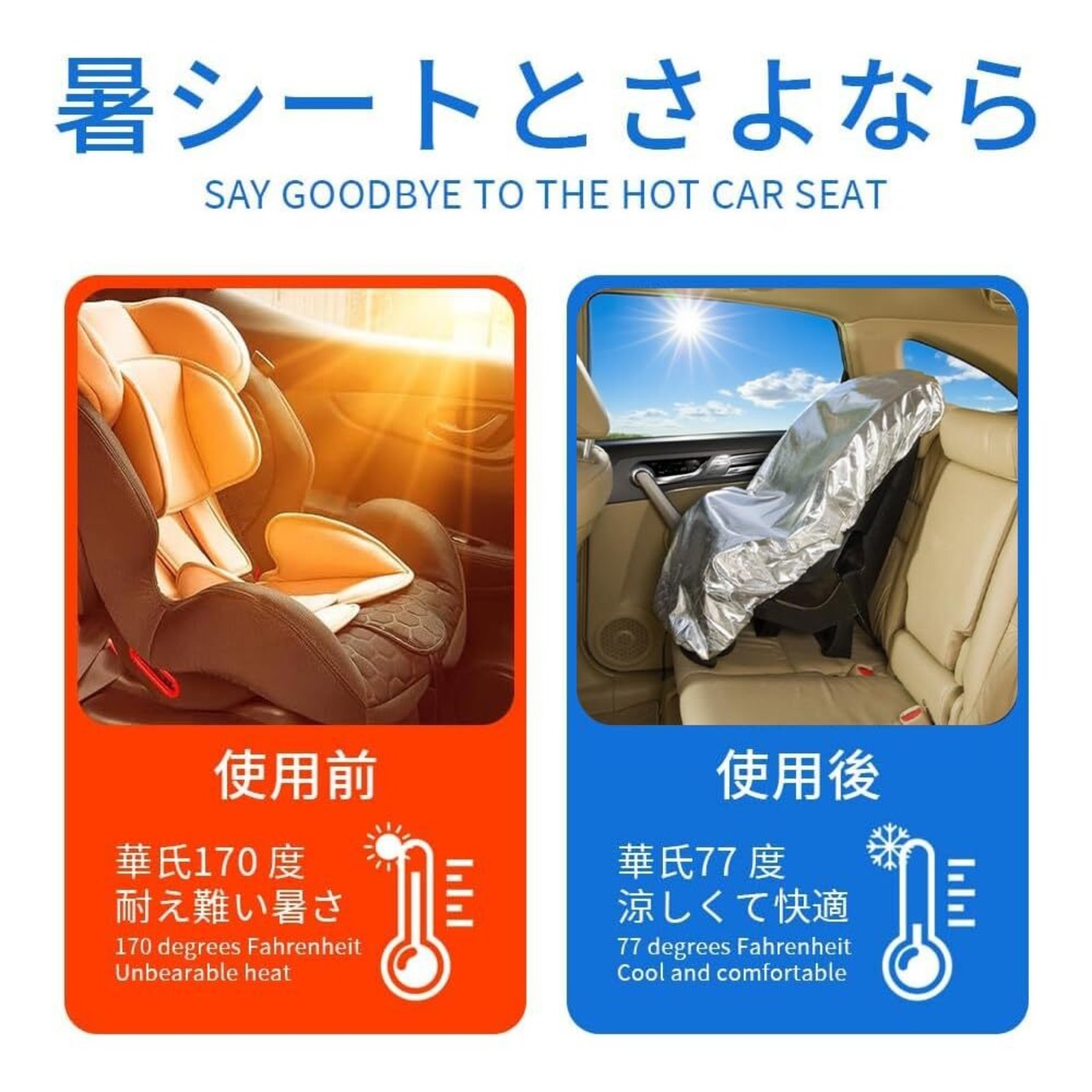 【JIS規格適合】チャイルドシート用遮熱カバー|反射率92%の航空機素材使用|コンパクト収納袋付属