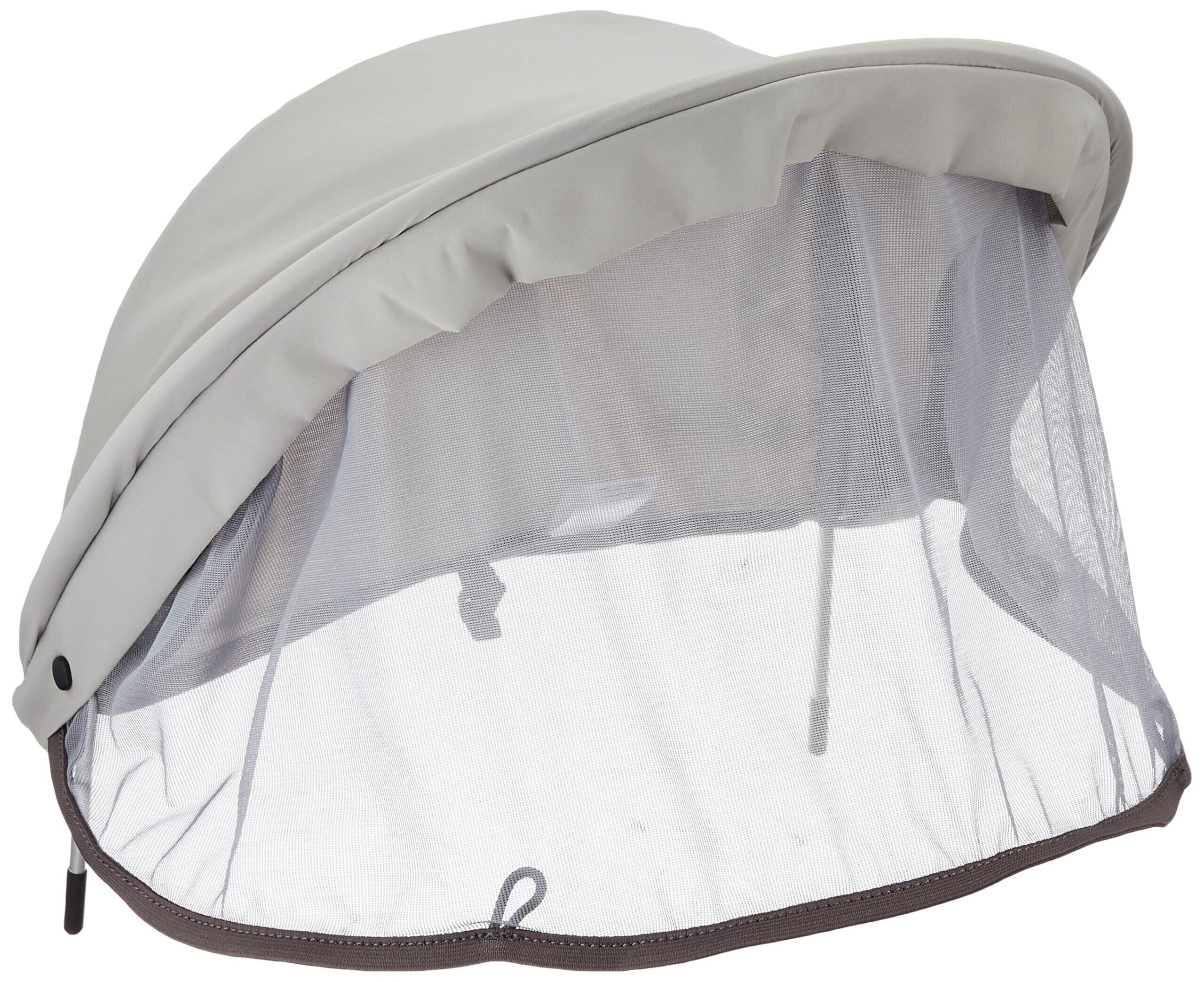 チャイルドキャリー専用の日差しよけフードです。UVカット効果のある素材を採用し、外出時の熱線と紫外線を軽減。巻き取り式の虫よけメッシュが付属しています。※2012年以前のモデルには対応していません。