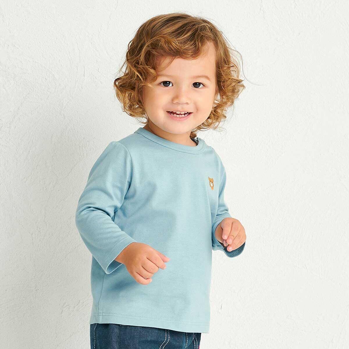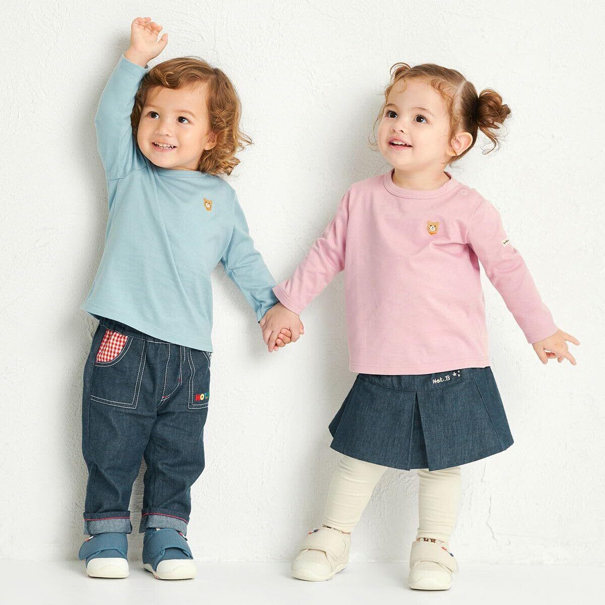 ミキハウス ホットビスケッツのワンポイント長袖Tシャツ。 胸元のワンポイント刺繍がかわいい長袖Tシャツです。 さらっとした肌触りで通気性がよく、汗をしっかりと吸収し 洗濯しても傷みにくく型崩れしにくい丈夫な天竺素材。