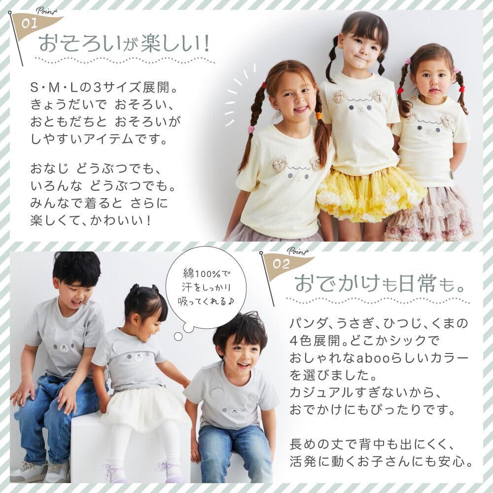 [aboo] アブー Tシャツ 刺繍 丸襟 色落ちしない 半袖 綿100% 子供服 ベビー服 80~130㎝ 3サイズ展開 ポーチ入り お誕生日 プレゼント どうぶつモチーフ お揃い ベビー キッズ