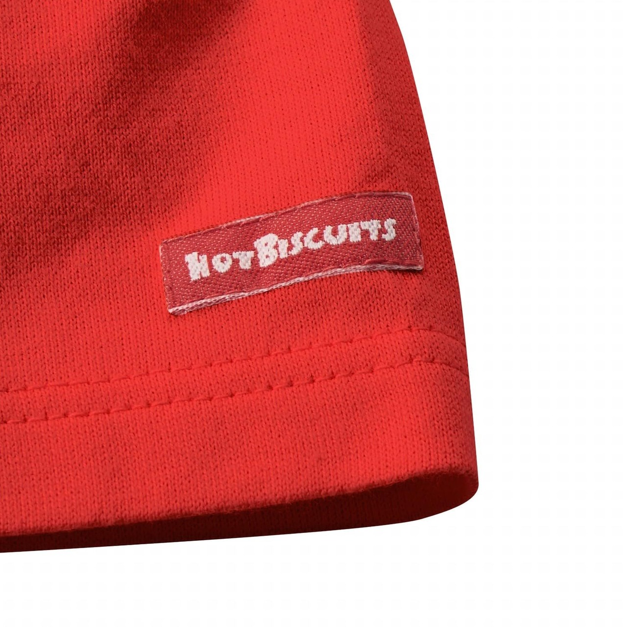 ミキハウス ホットビスケッツのワンポイント半袖Tシャツ。 胸元のワンポイント刺繍がかわいい半袖Tシャツです。 ホットビスケッツらしく、カラフルな子どもらしいカラーリング!