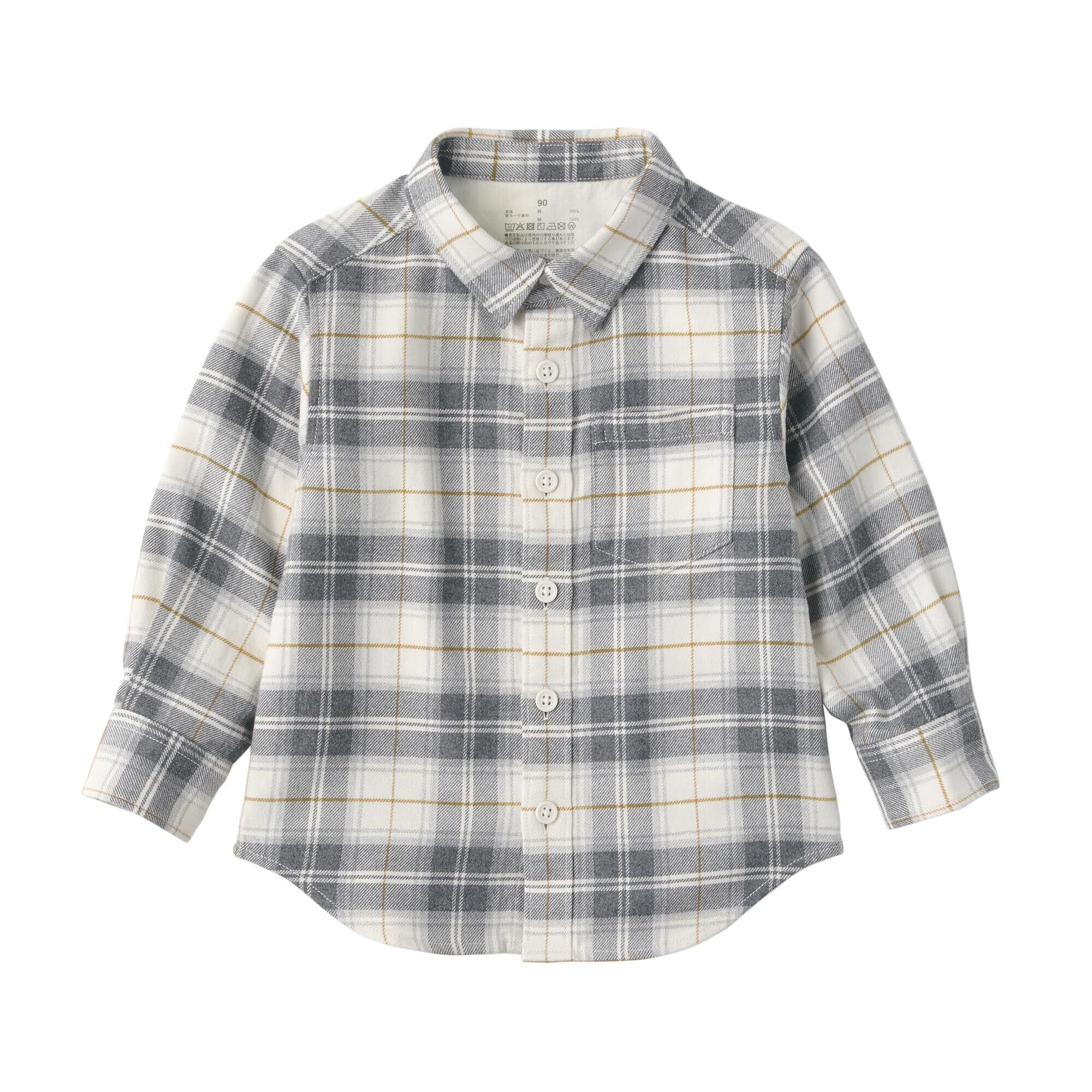 [MUJI] シャツ ベビー 両面起毛フランネル長袖シャツ