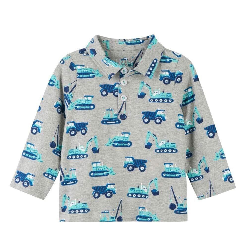 【在庫セール】[Hatley ハットレイ] Cute Construction Trucks ポロシャツ・ゆかいな工事の車たち 60~70cm、3M-6M(58-69cm) グレー ポリウレタン94%, ポリエステル6% F18DII1344