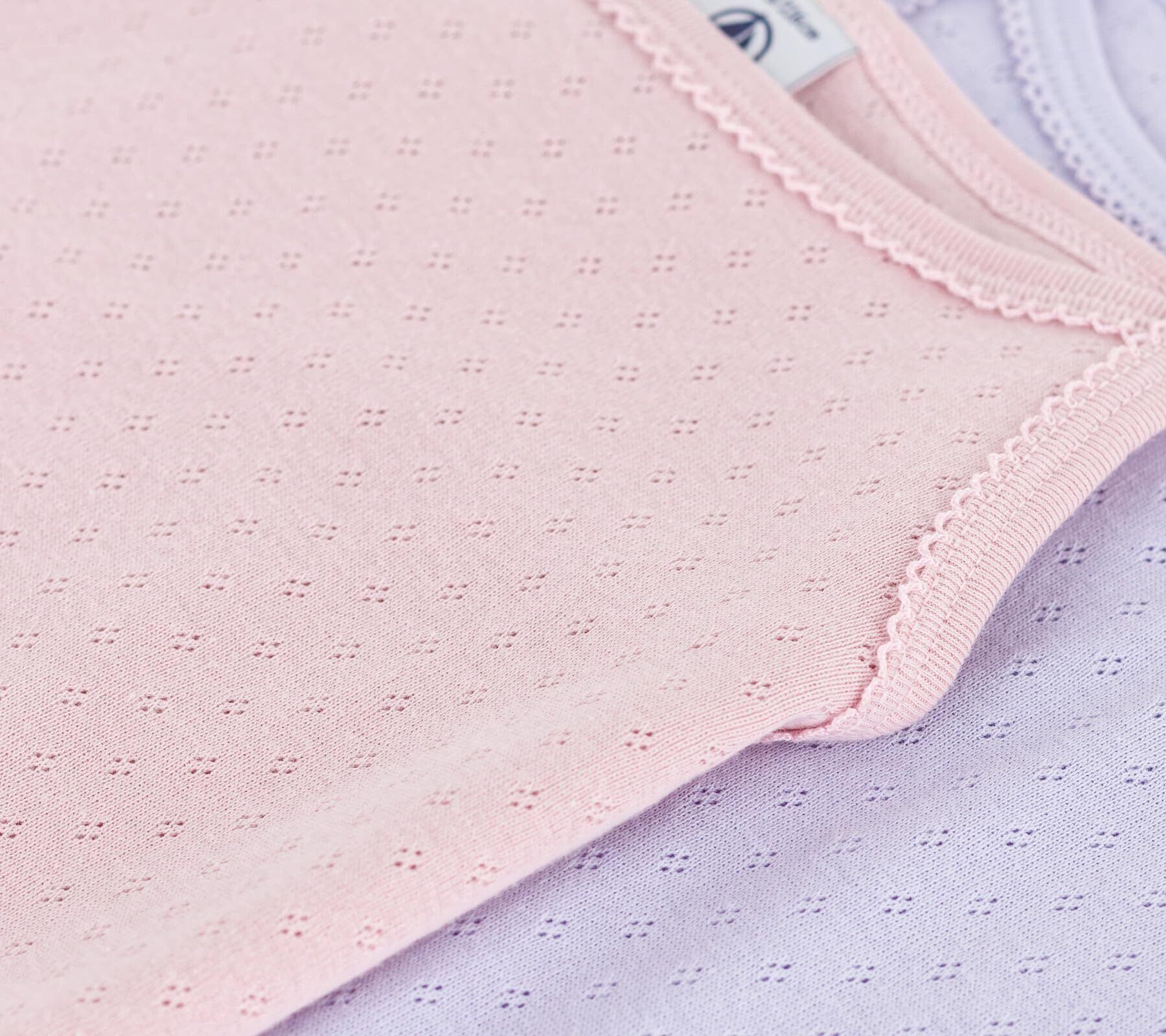 エレガントな針抜き模様をあしらい、淡い色合いのピンクとライトパープルで揃えたキャミソール2枚セットです。環境にやさしい、オーガニックコットンを使用しナチュラルな着心地を実現しています。首元から袖口にかけてにあしらわれたピコレースが、シンプルなデザインのアクセントに利いています。ご自宅用としてはもちろん何枚あっても嬉しいアイテムはギフトにもおすすめ。※プリントは永久的なものではなく、もみや摩擦でひび割れたり、繰り返しの洗濯によるプリントの変色や、脱落が生じる場合があります。中性洗剤などで単独洗いをしてください。