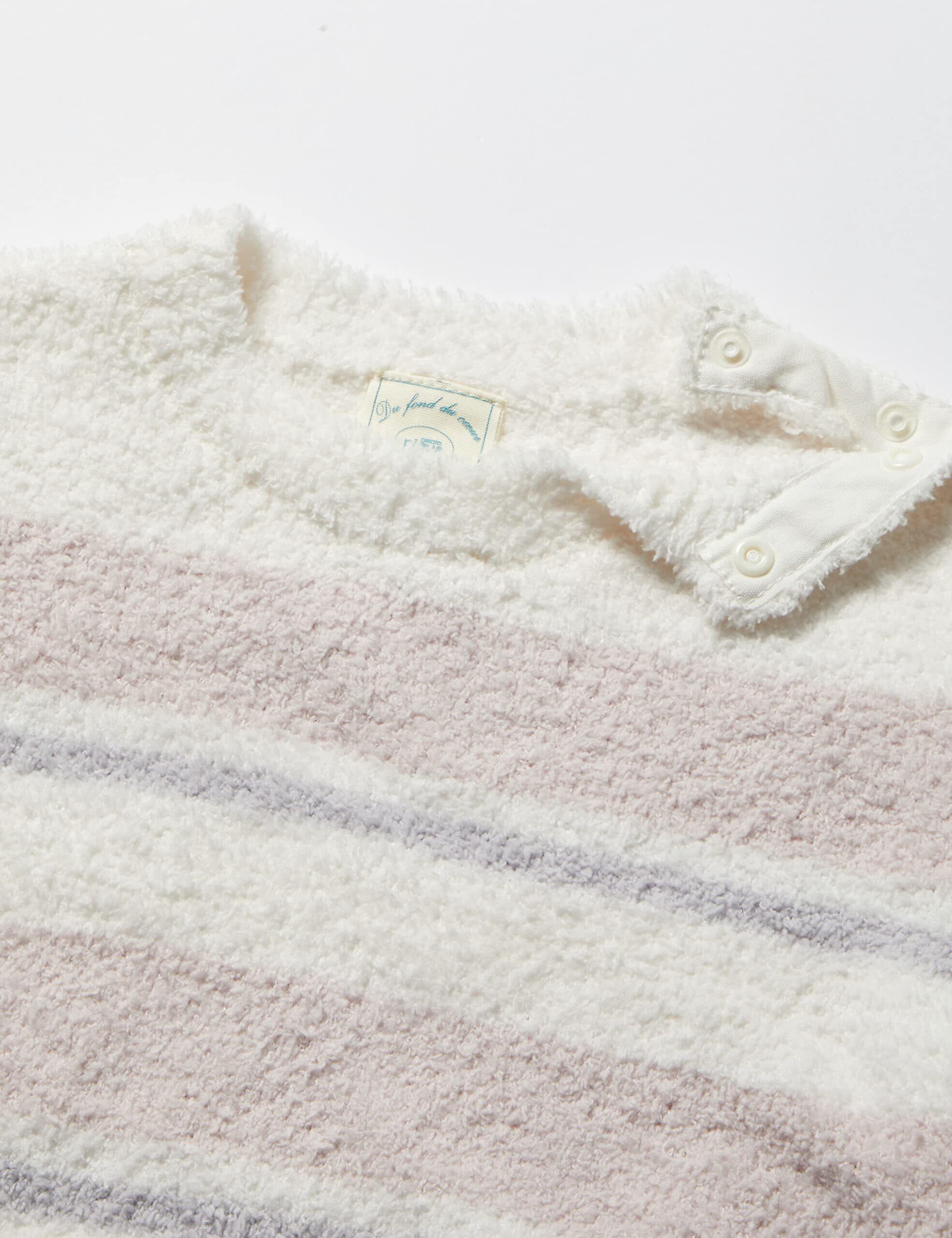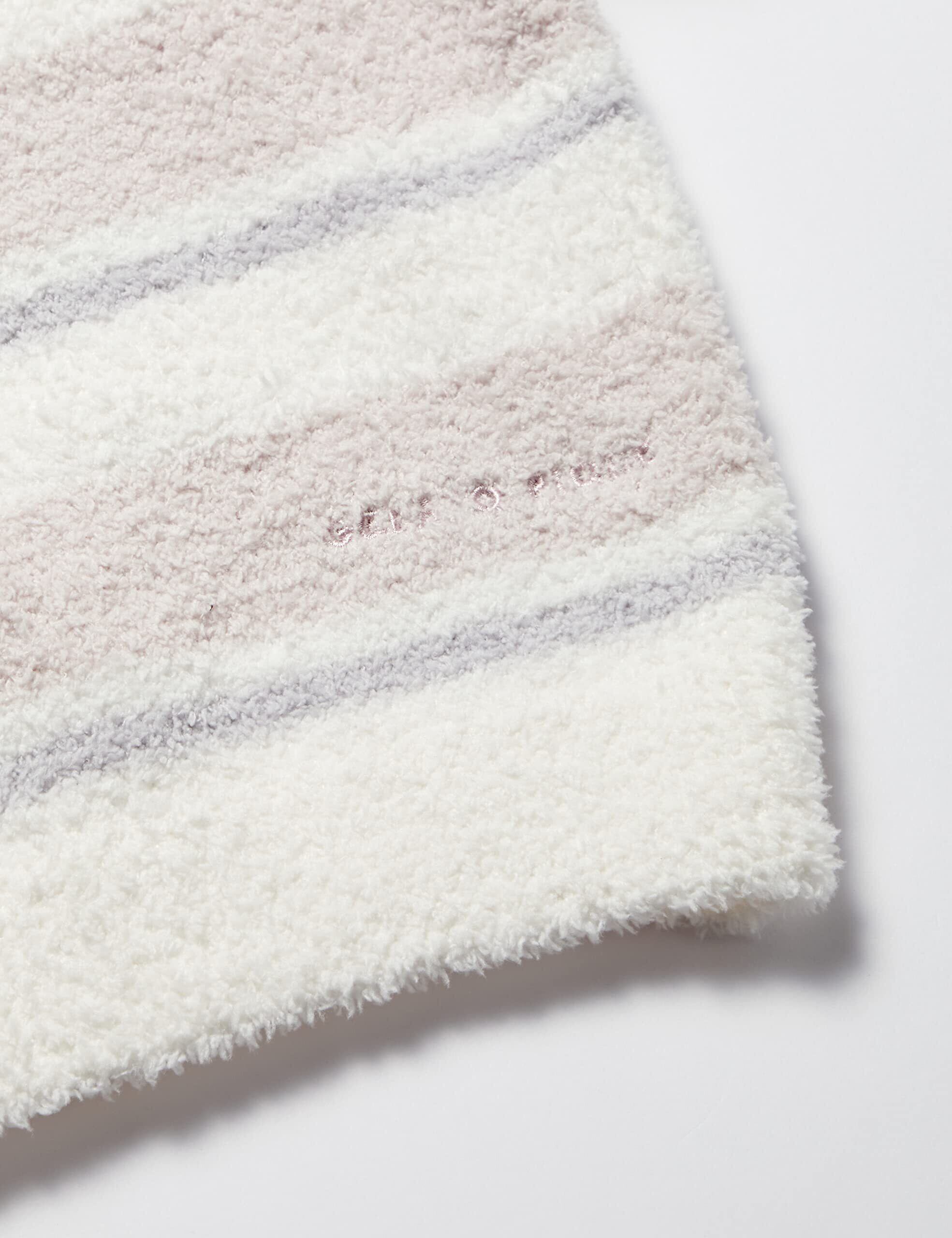 春を感じる、ソフトな色合いのランダムボーダーシリーズです。やや短毛の「ベビモコ」素材を使用したプルオーバーは、ふっくらとして温かいのに着心地は軽やか。汗をかきやすいベビーに配慮して、吸水性能に優れた素材を使用しました。フロントの左裾に入れたブランドロゴ刺繍が、控えめなアクセントになっています。色はピンクとベージュの2色展開。同素材のロングパンツとコーディネートできるほか、同シーズンのアルファベット柄ロングパンツとの相性も抜群です。LADIES、HOMME、KIDSのシリーズもあるので、ご家族みんなでお揃いのおうちスタイルをお楽しみください。