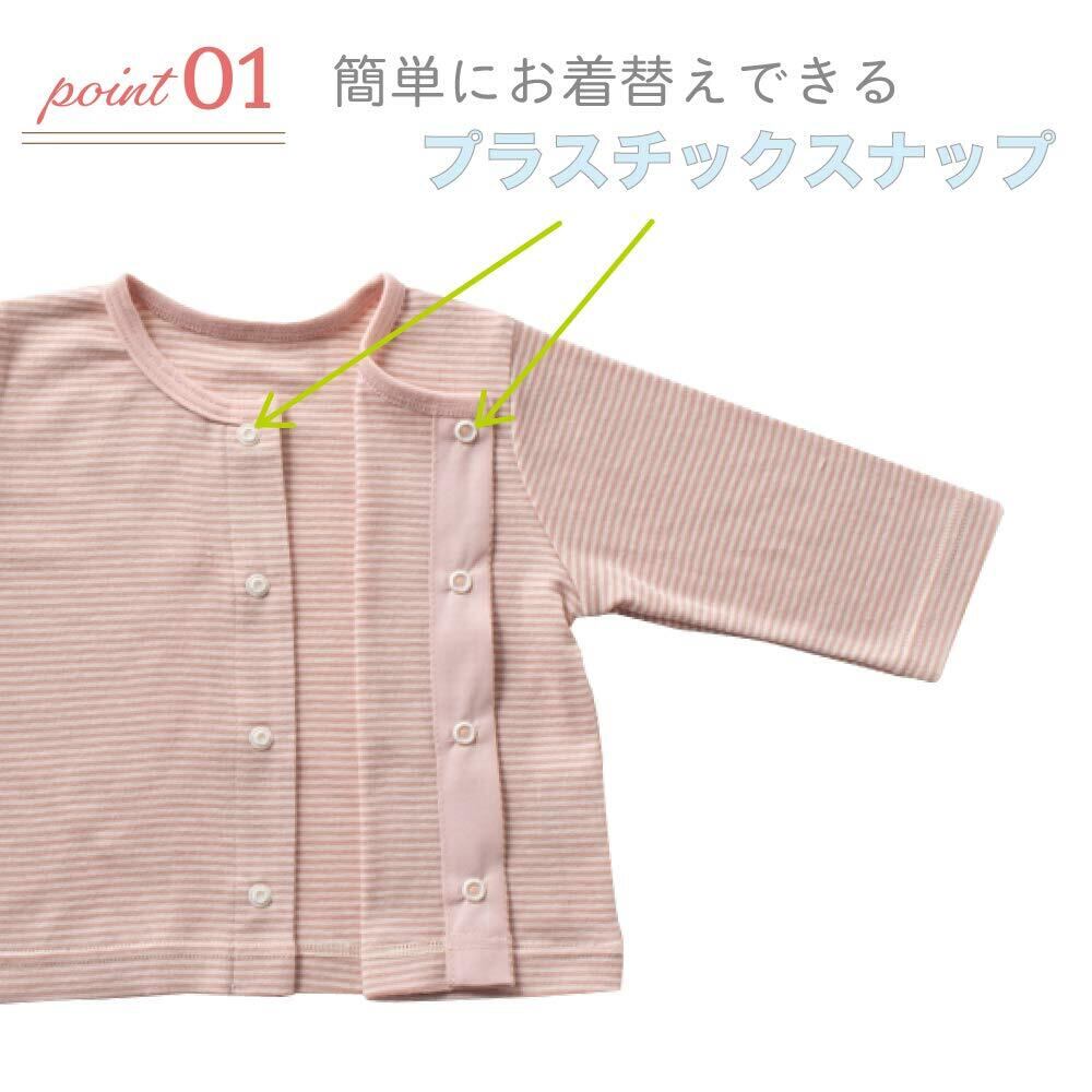 簡単に留められてお着替えしやすいスナップボタンを使用。忙しい朝でもお着替え楽々です。