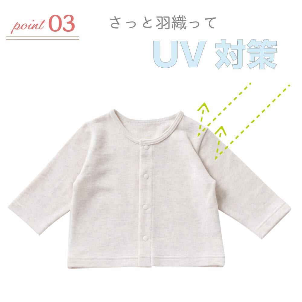 【繊細な赤ちゃんだからこそ】体温調節の未熟な赤ちゃんに「はおりアイテム」は必須です。朝晩の少し肌寒いとき、ちょっとしたお買い物や冷房が効いているお店の中での冷房対策、日焼け防止にもお役立てください。1枚用意しておくだけで簡単に羽織れてさっと体温調整ができます。暖かいのに通気性がよいので沢山動くお子様にもお勧めです。