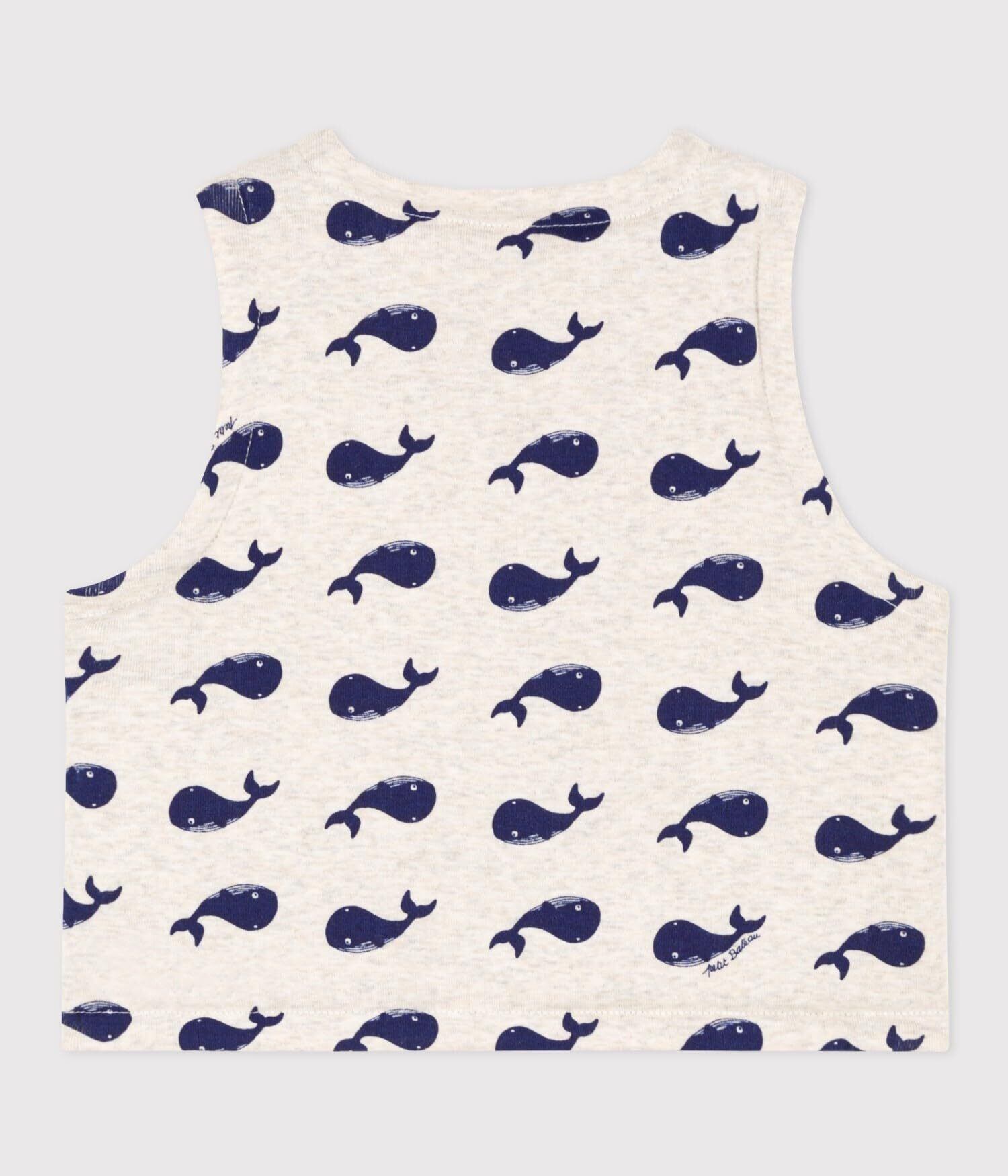 表地にはクジラプリントを、裏地にはアイコニックなミラレボーダーをあしらいリバーシブルで着用が可能なベストです。第二の肌と呼ばれるほど心地よい肌触りの1x1リブ編み素材を使用。体温調節に重宝するベストは一枚あると便利なアイテム。ギフトにもおすすめです。
