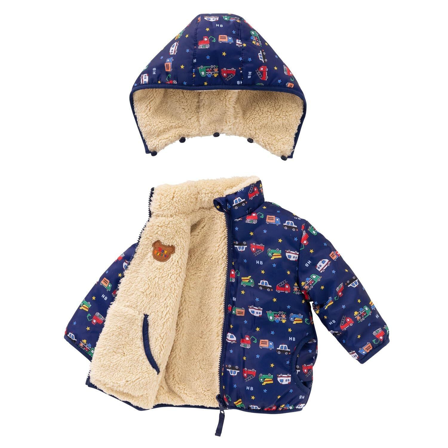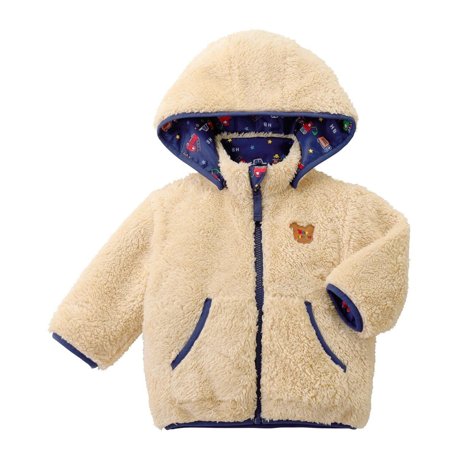 ミキハウス ホットビスケッツの裏ボアフリースジャンパー。 毎年人気の裏ボアフリースのジャンパーは、 リバーシブルなので、裏表でがらっと雰囲気が変わるので一枚で着回しができます。