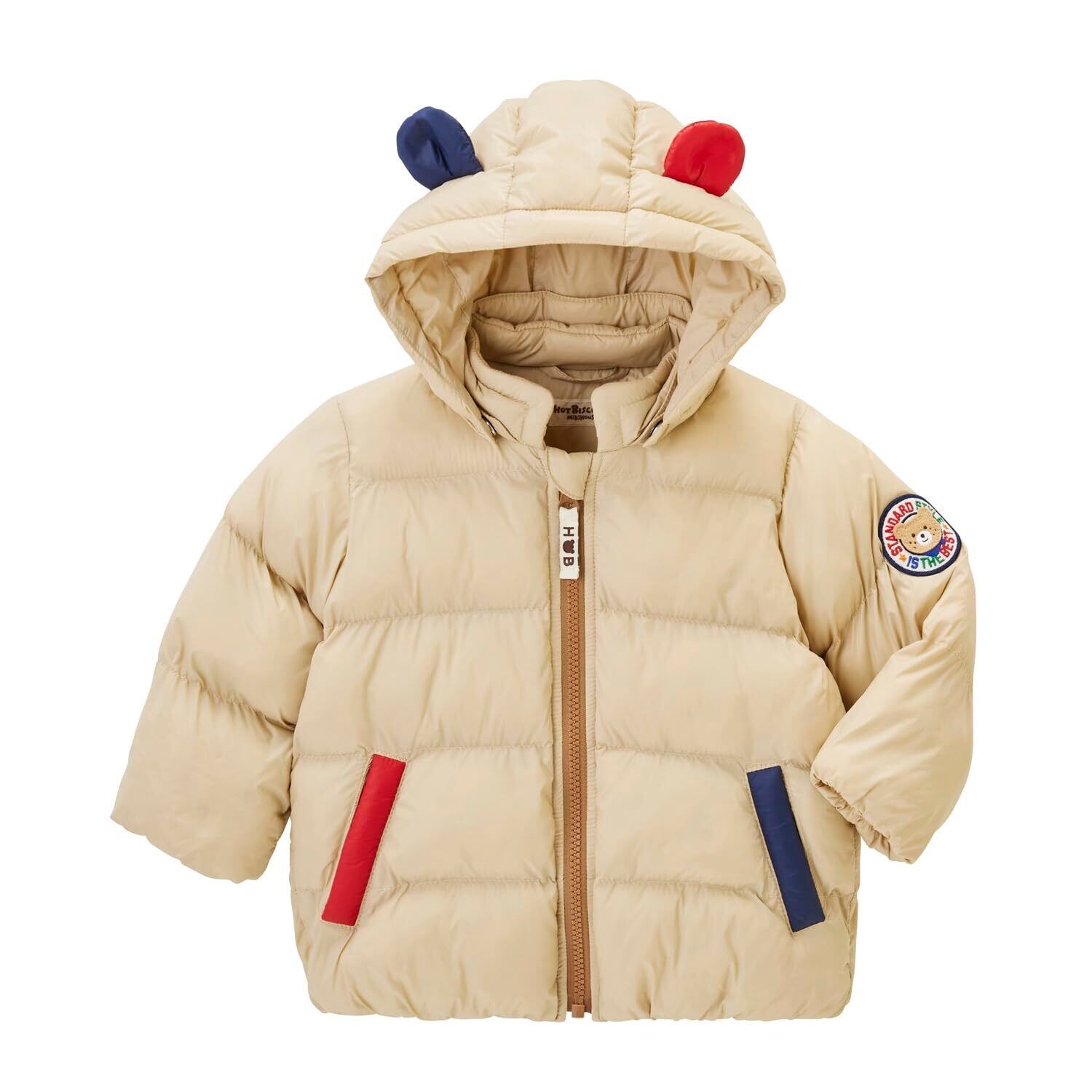 ミキハウス ホットビスケッツの機能中綿(シンクラウド)素材のジャンパー。 ダウンのような“あたたかさ”と“軽さ”が特徴の機能わたを使用したジャンパーです。 洗濯機で洗えていつでも清潔!(マシンウォッシャブル) シーズン中の汚れにもご自宅で対応できます。