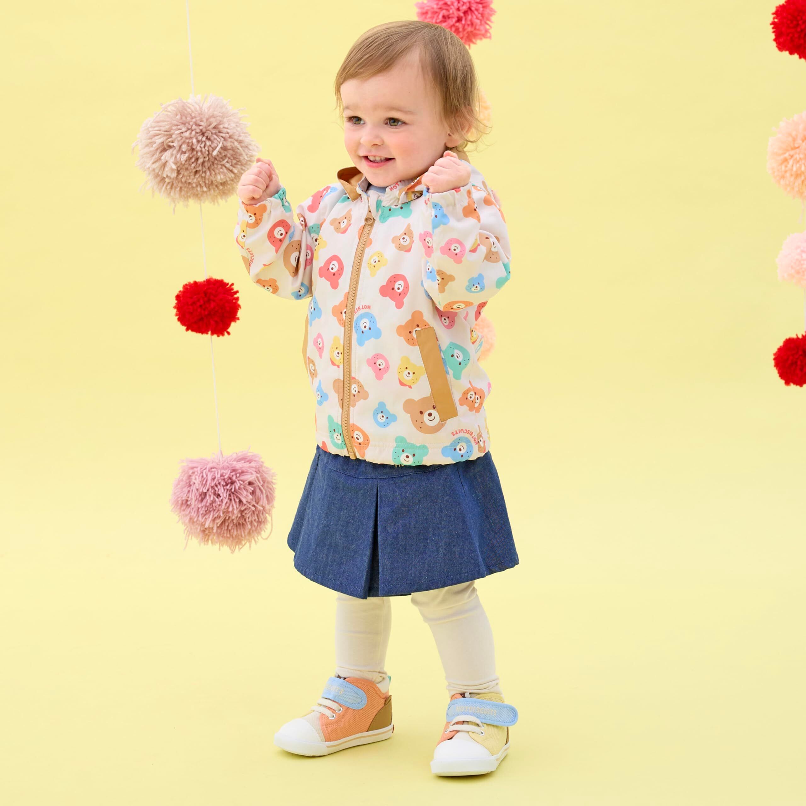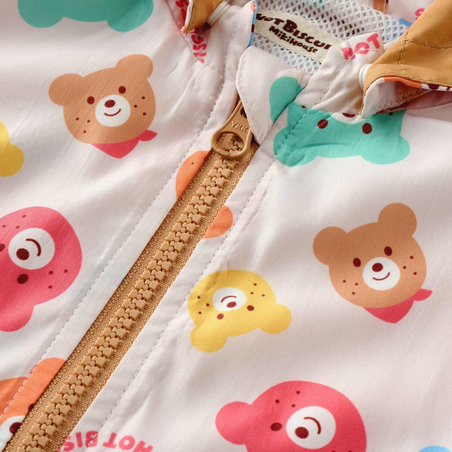 ミキハウス ホットビスケッツの総柄ウィンドブレーカー。 人気のカラフルビーンズシリーズからウインドブレーカーが登場! いろんな色のビーンズが総柄になったポップなデザイン。 ホットビスケッツらしいカラフルな配色が子どもらしく元気な印象に。 ユニセックスで着ていただけます。 日中と朝晩の気温差で体温調節が難しい季節の変わり目に、 Tシャツやシャツの上からさっと羽織れるので一枚持っておくと安心。 かさばらないので持ち運びもしやすい◎