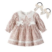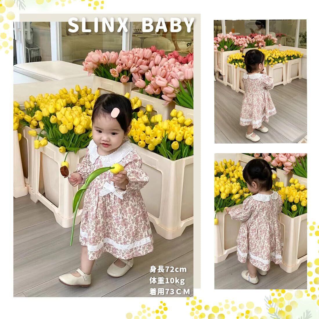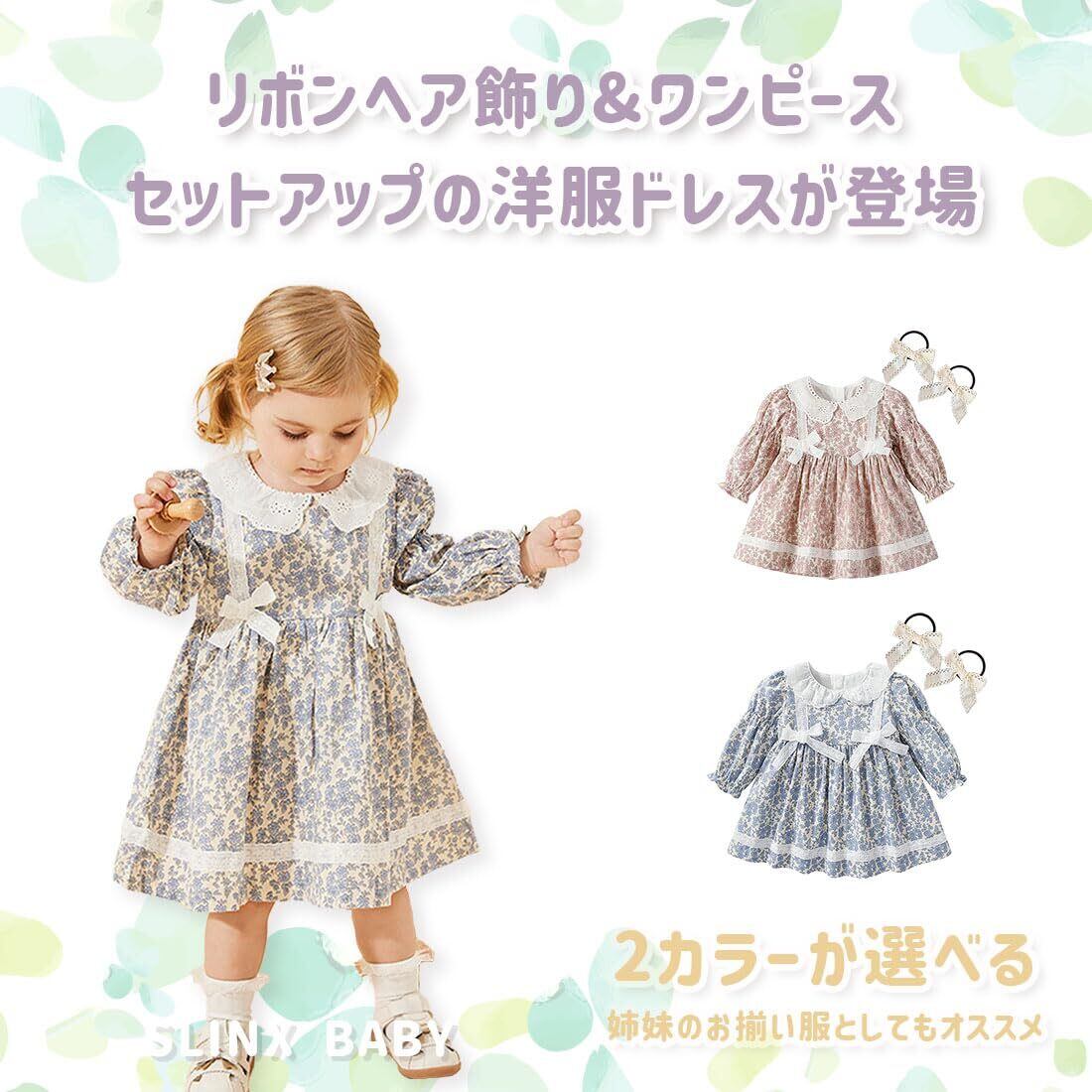 [SLINX] ベビー服 ワンピース リボン ドレス 花柄 レース 白襟 切り替え 子供服 赤ちゃん 新生児 おしゃれ 七五三 お食い初め 出産祝い 退院服 春秋 Q270