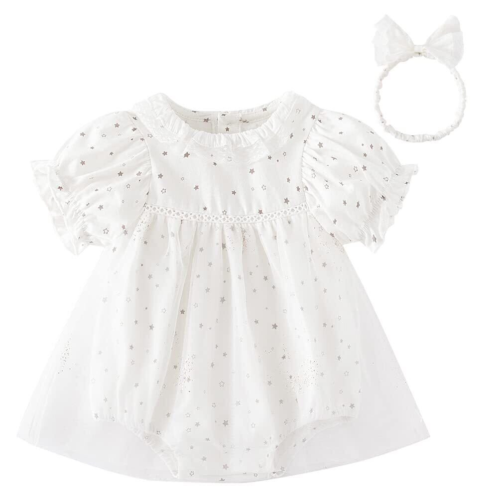 [Reegoo Peter] ベビー服 女の子 ワンピース ロンパース ヘアバンド レースドレス セレモニー服 綿100% 夏服 新生児服 出産お祝い 59 66 73 80