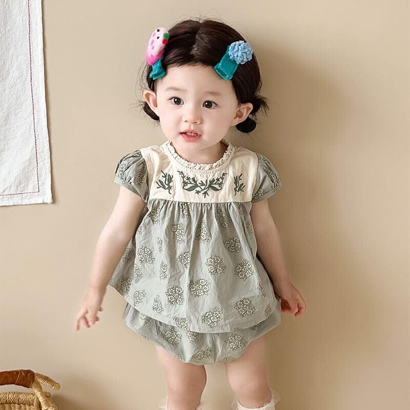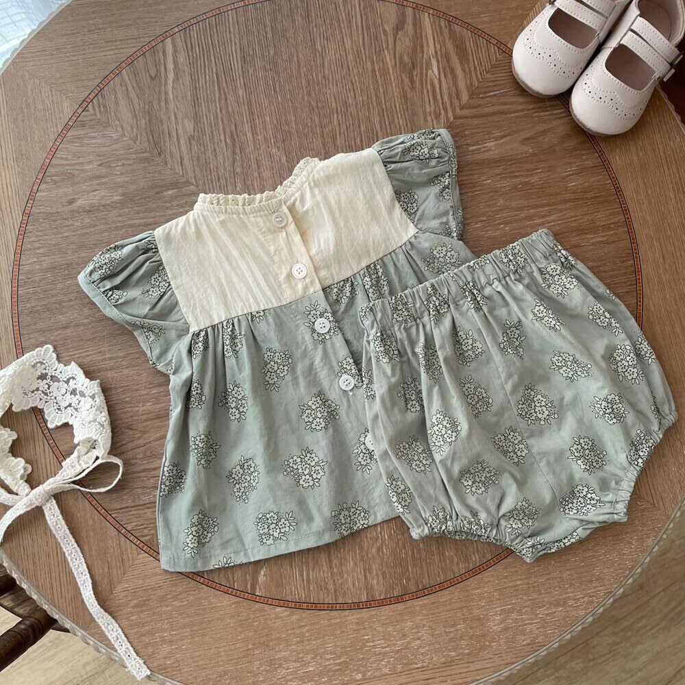 【数量限定】[Jaydyequ] ベビー服子供服女の子洋服夏半袖ワンピースショーツパンツガールズカジュアル普段着お宮参り発表会七五三バースデー贈り物ランの花柄