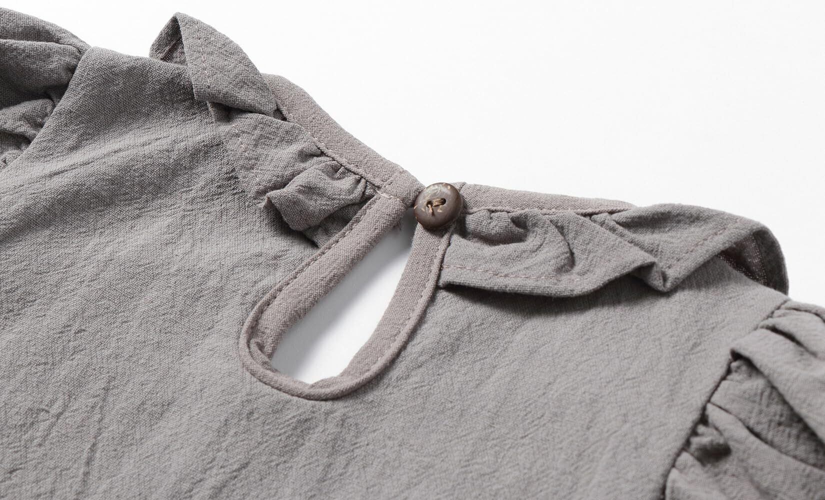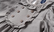 【デザイン】ネックラインと胸元にはフリルデザインを採用し、全体に優雅さと可愛らしさを加えています。