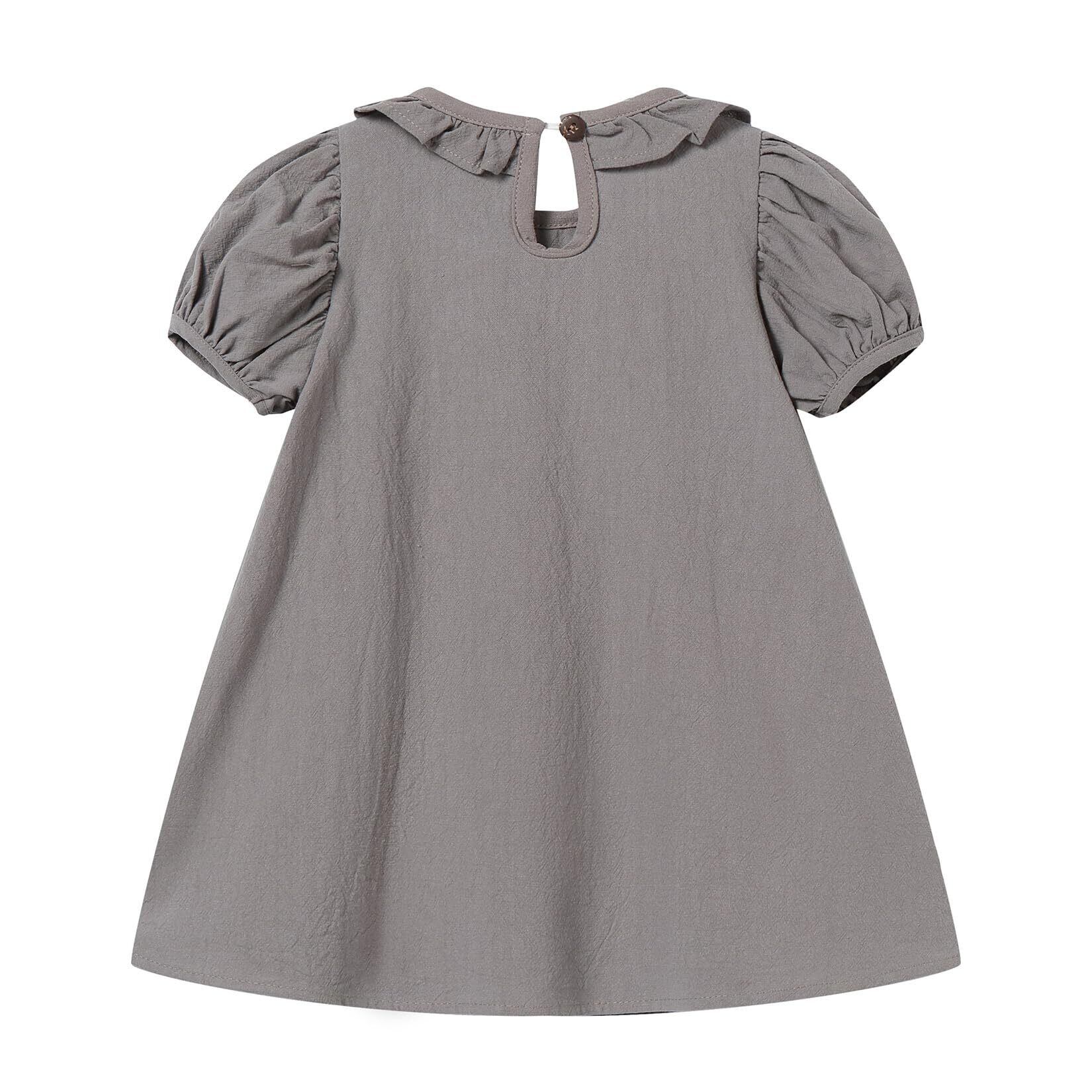 [LSMUDKINGDOM] ベビー ワンピース 半袖 パフスリーブ フリル 襟付き aライン 幼児用 女の子 夏